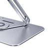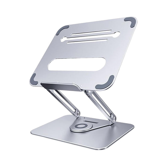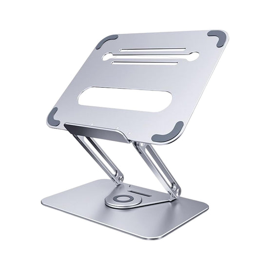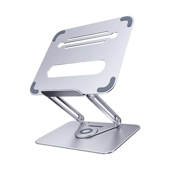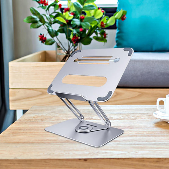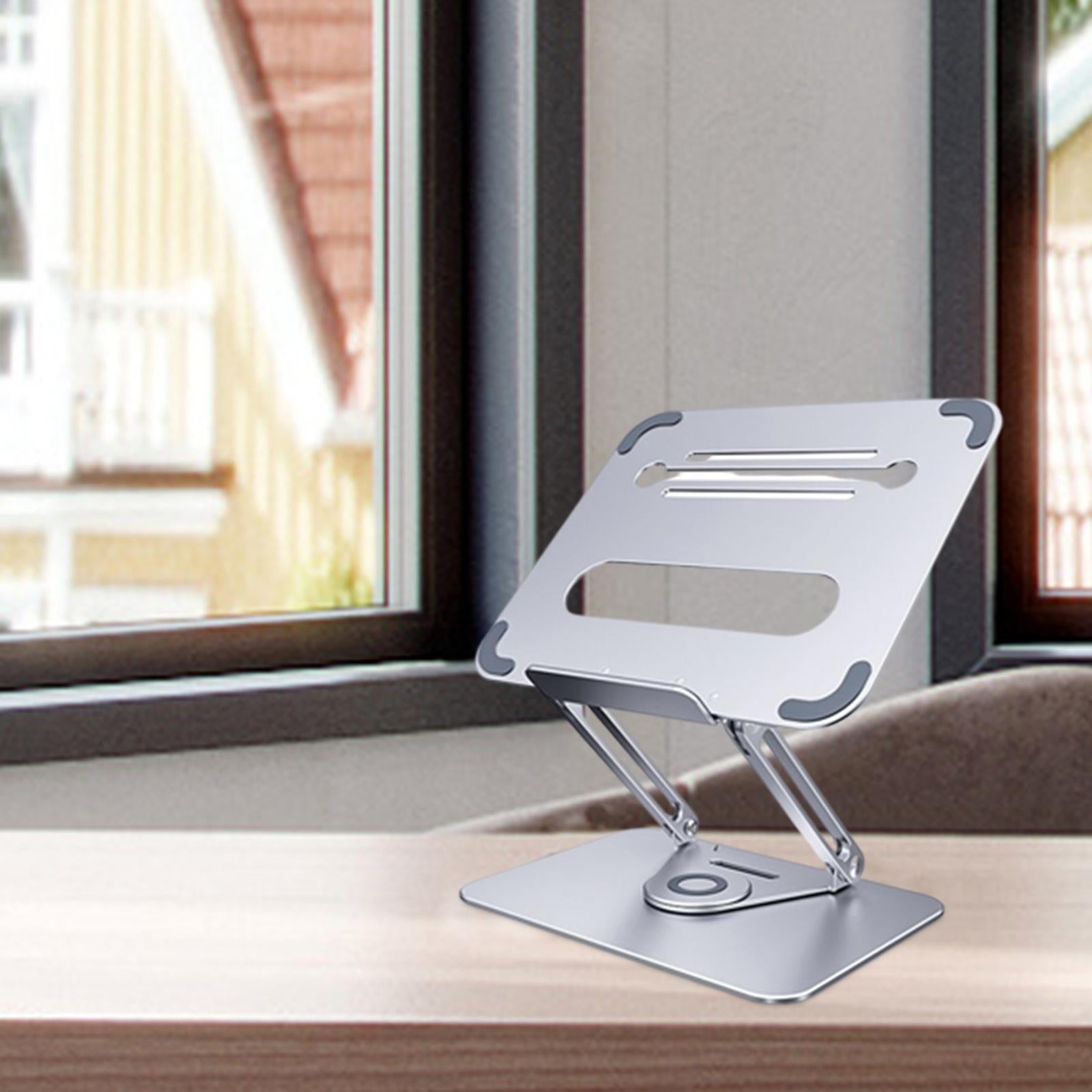 - 360°ROTATION BASE: This Laptop Stand For Desk featuring a 360° rotatable axis connecting with the base, this laptop stand allows you to swivel your laptop to any angle, this give you plenty of flexibility in terms of working position, It will be especially useful for group projects or meetings.Using the principle of building structure, using triangular shaft triangular support, balanced force, stable and not shaking.