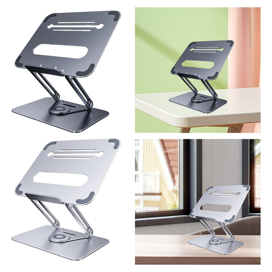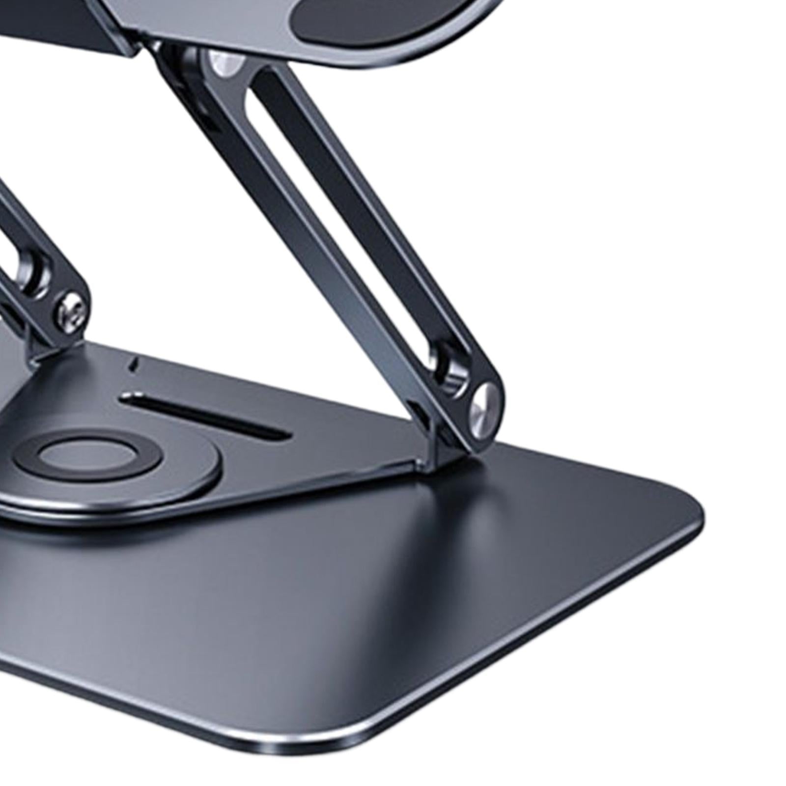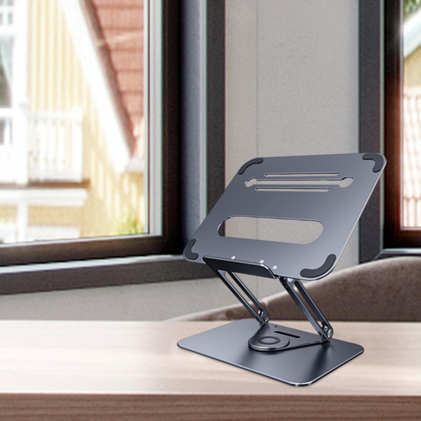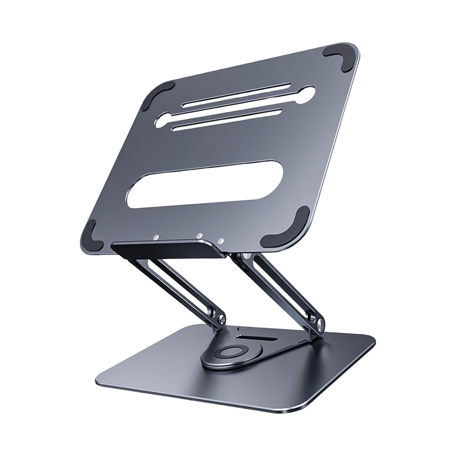 - 360°ROTATION BASE: This Laptop Stand For Desk featuring a 360° rotatable axis connecting with the base, this laptop stand allows you to swivel your laptop to any angle, this give you plenty of flexibility in terms of working position, It will be especially useful for group projects or meetings.Using the principle of building structure, using triangular shaft triangular support, balanced force, stable and not shaking.