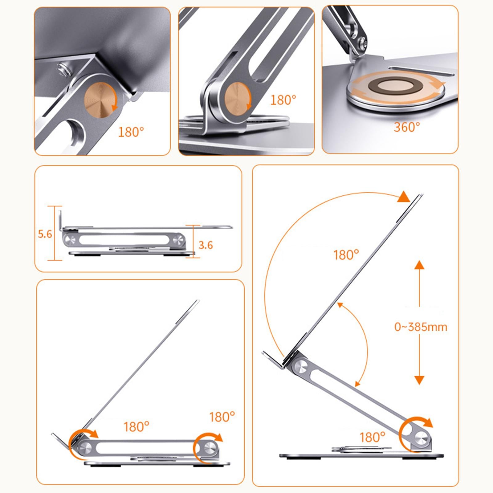 - HEIGHT AND ANGLE ADJUSTABLE: This Laptop Stand Riser with double damping aluminum alloy shafts, designed with adjustable in height and angle, the shaft angle can be adjusted 180°, the height can be adjusted 0-385mm, you can raise your laptop screen to a more ergonomic viewing height which is better for maintaining a healthy posture.
