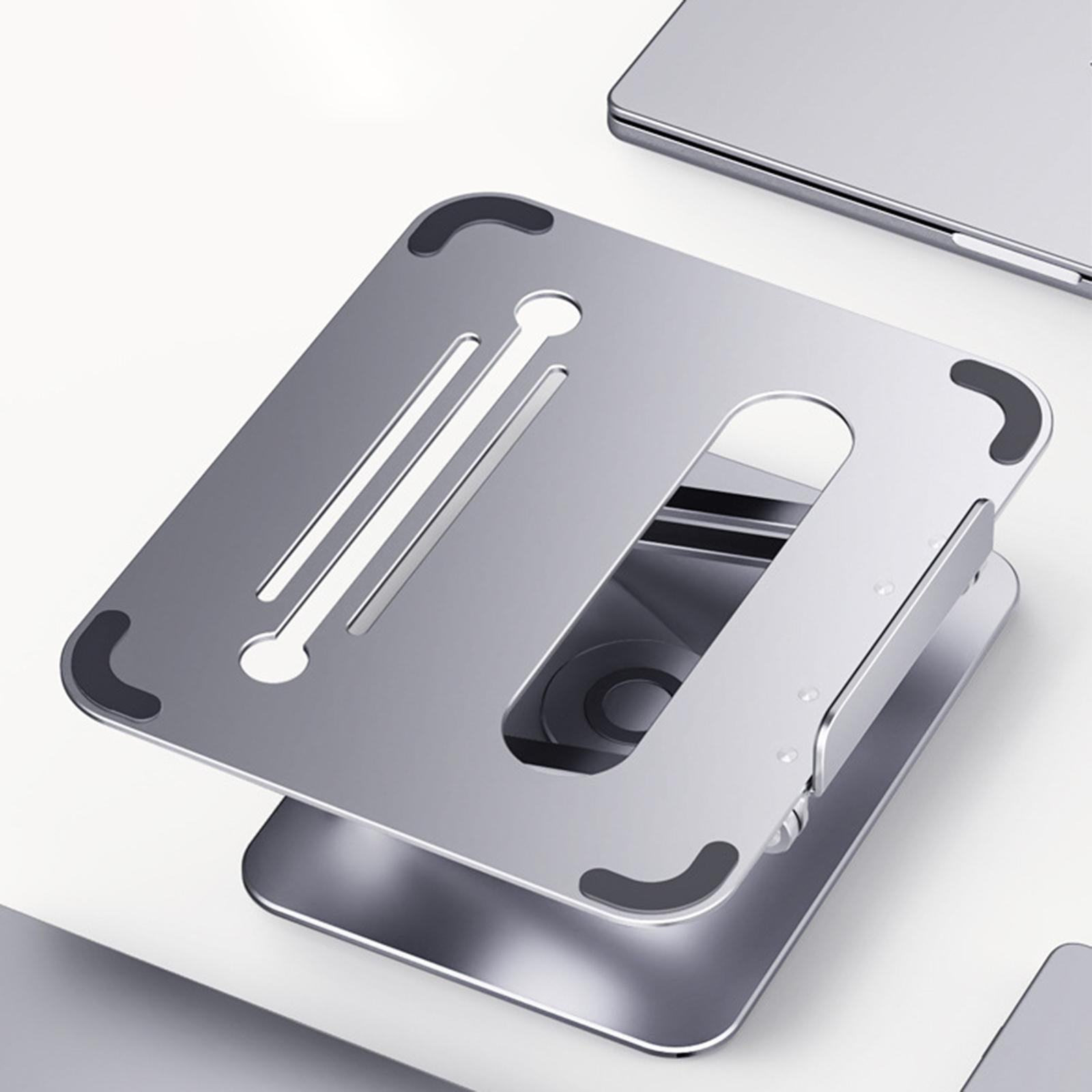 - STABLE AND RELIABLE: This Laptop Stand is made of premium aluminum alloy, stable and sturdy, the hollow out design provides good ventilation and airflow to prevent your laptop from overheating, with silicone pads can protect your laptop from sliding and scratches.