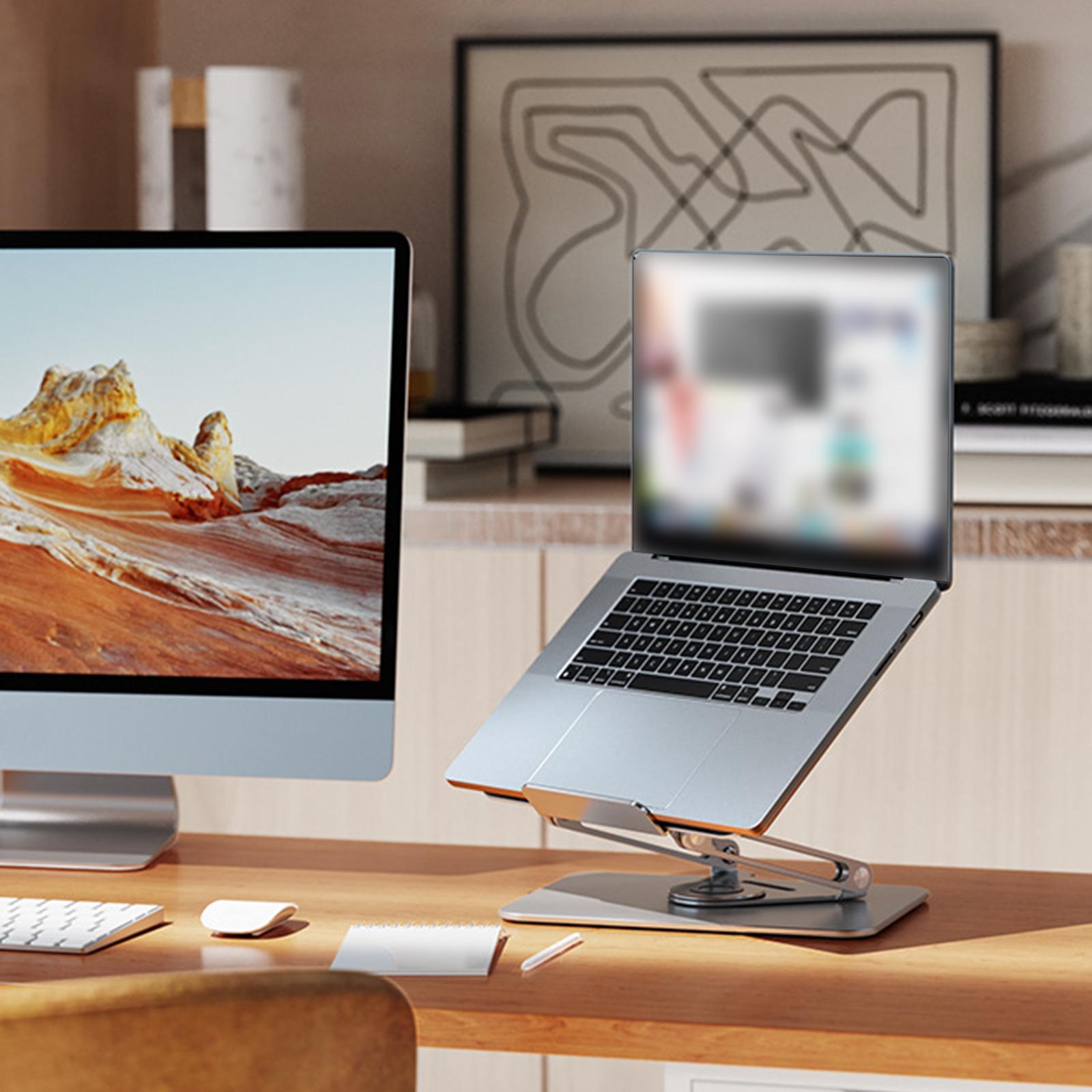Laptop Stand for Desk with 360 Rotating Base Laptop Riser Dual Rotary Shaft Gray