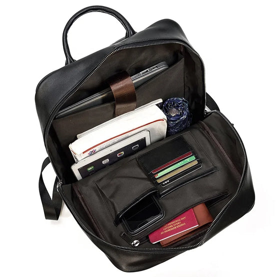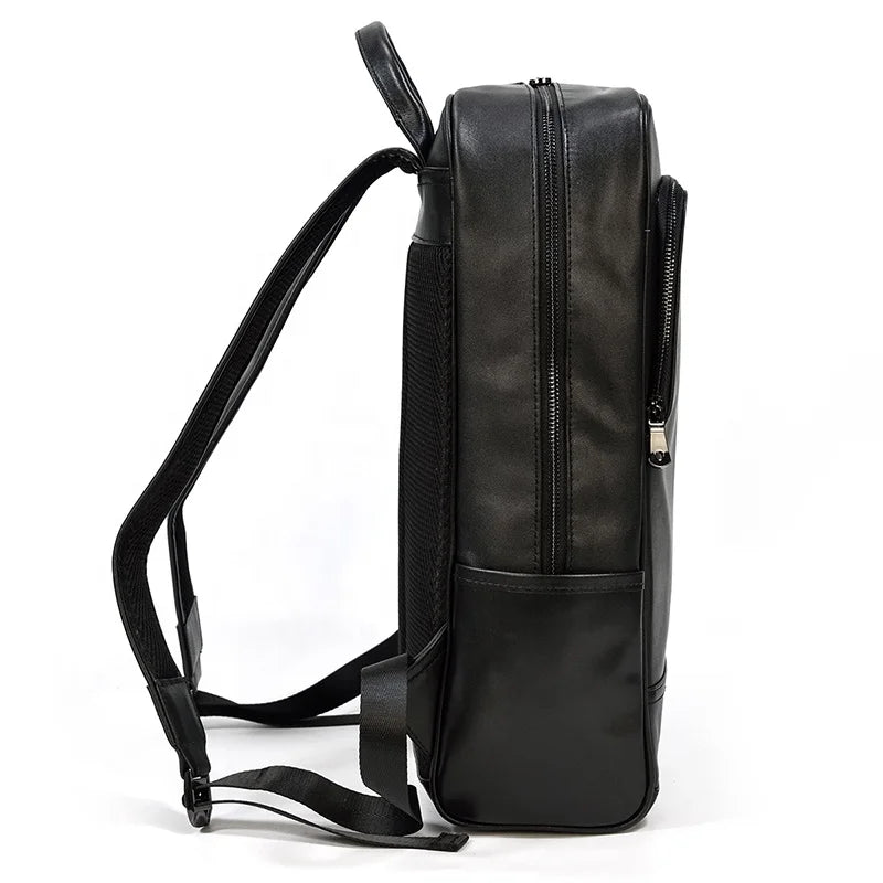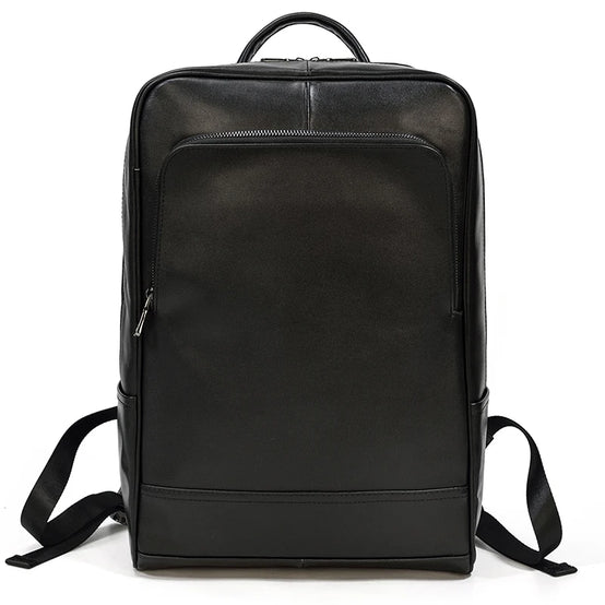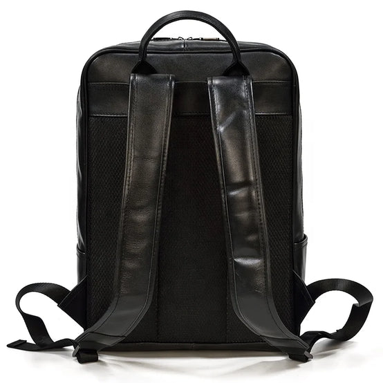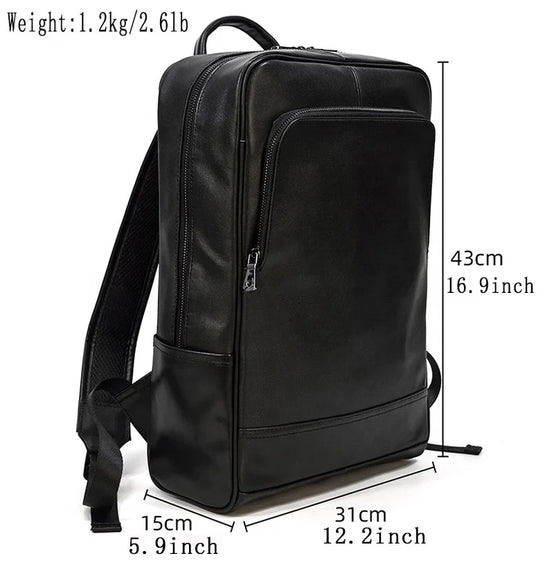 Lychee Pattern Leather Black Laptop Bag Classical Men Genuine Leather Rucksack Backpack For Daily Life