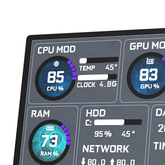 - This screen will display the data of CPU, GPU, RAM, HDD, time and date.