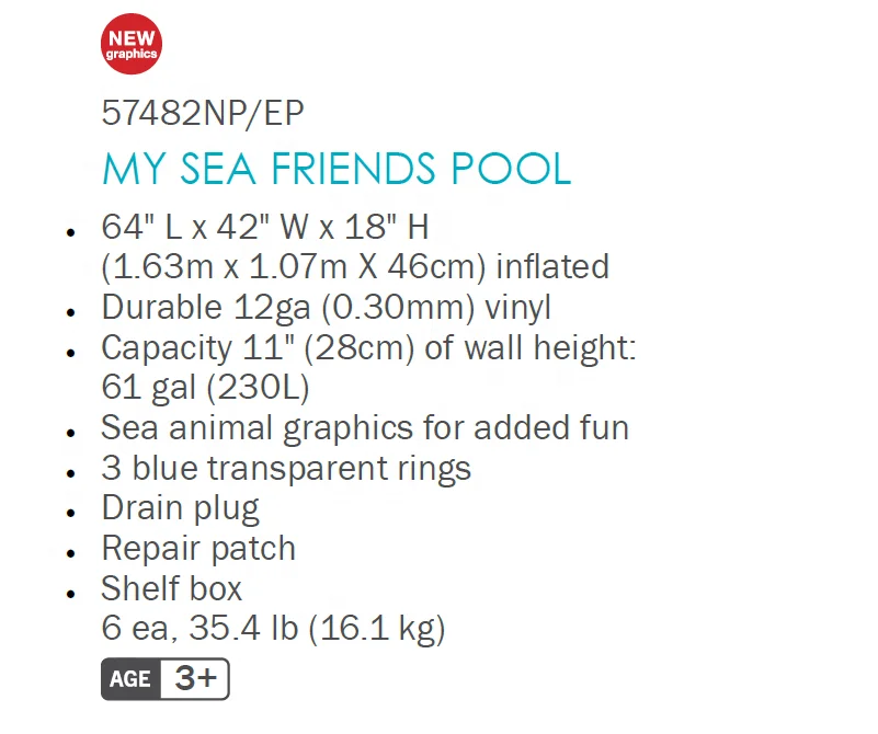 Intex 57482 My Sea Friends Elliptical Pool Inflatable Children Swimming Pool