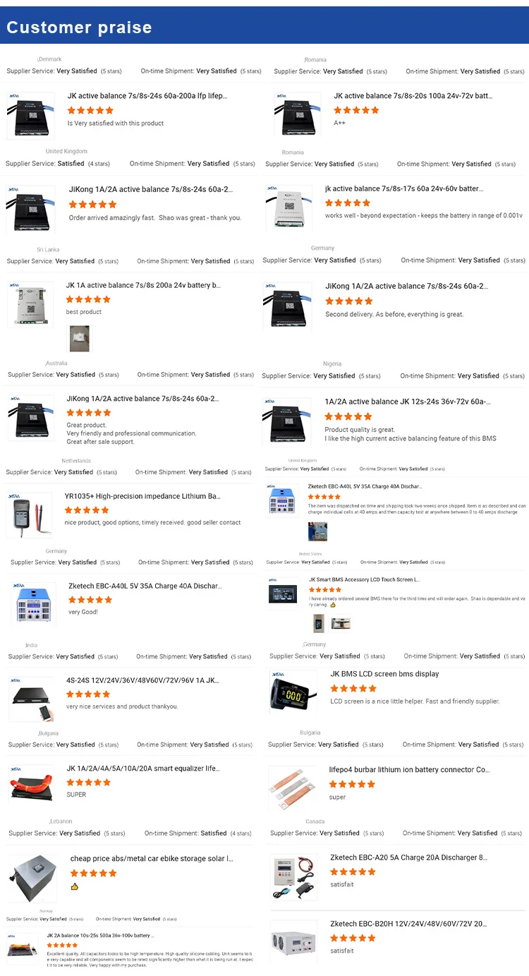 JK active balance 7s/8s-20s 40a 24v-60v battery board management system smart lipo/lto/lifepo4 bms for lithium ion battery pack