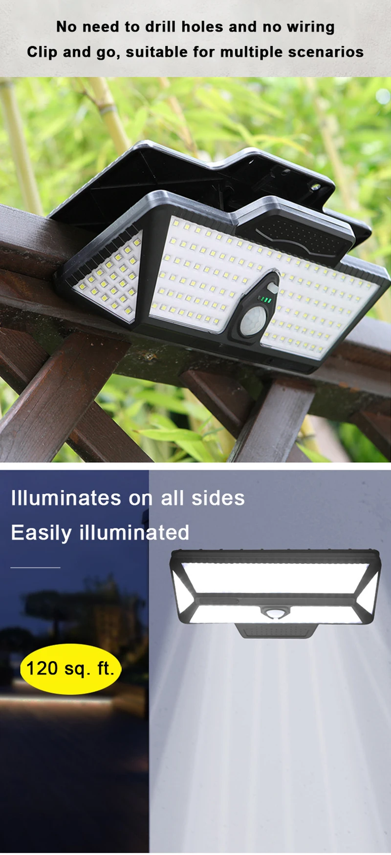 Outdoor Solar Pathway Waterproof Clip-on Outdoor Camping Light Motion Sensor Lamp Fence Deck Tent Garage Solar Garden Light
