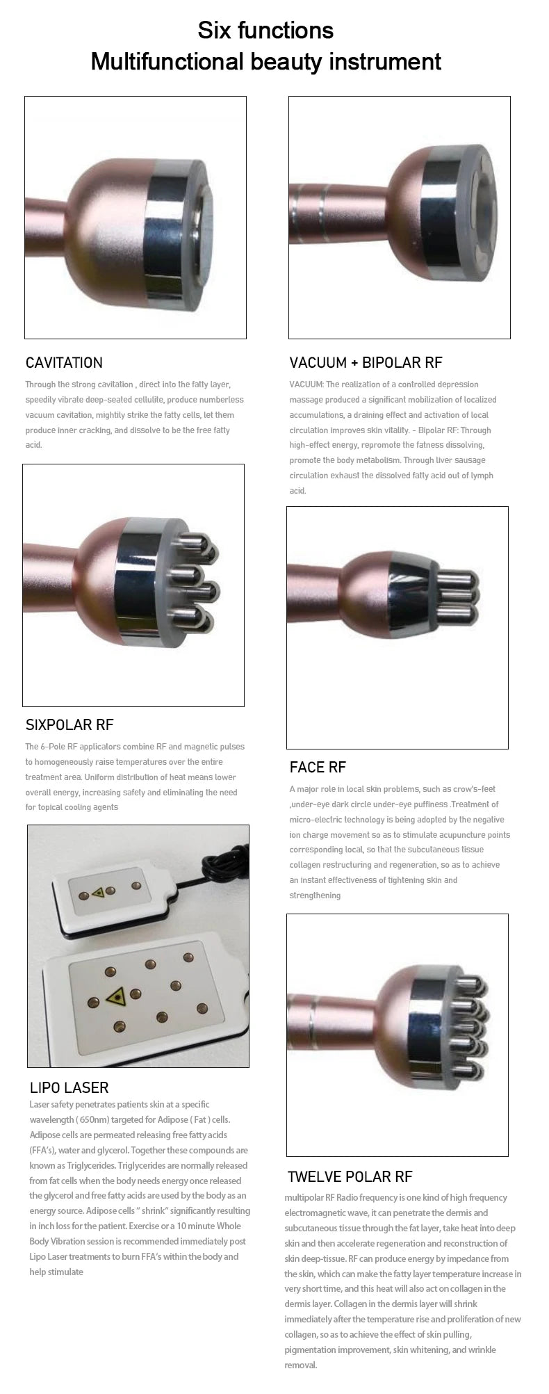 Medical Grade 6 In 1 Lipo Laser Rf Cavitation Body 40k Vacuum Cavitation System Shaping Slimming Fat Removal Beauty Machine
