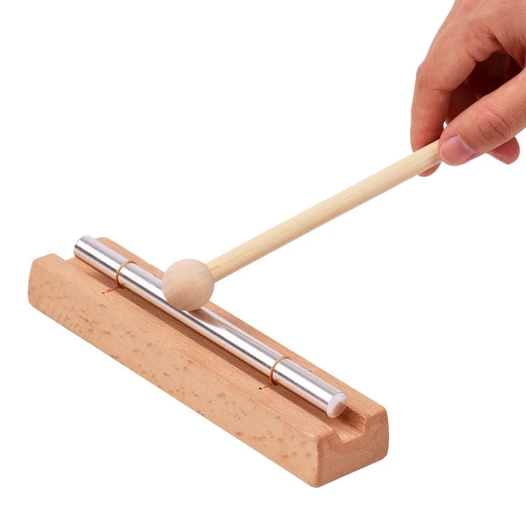 Using the little wood mallet to tap on the metal bars, pleasant sound will appear.