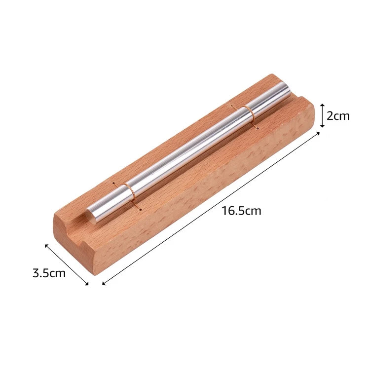 Aluminum metal bar, attached to a solid beech wood base by cords, exquisite and durable.