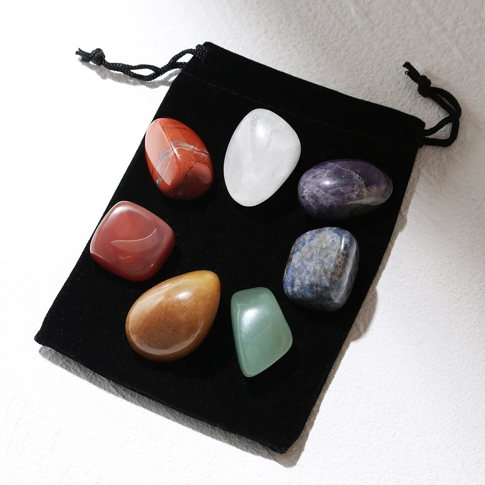 7pcs Irregular Reiki Gemstone Polished Rock Quartz Yoga Energy 7 Chakra Meditation Healing Tumbled Stone Crystal Gift