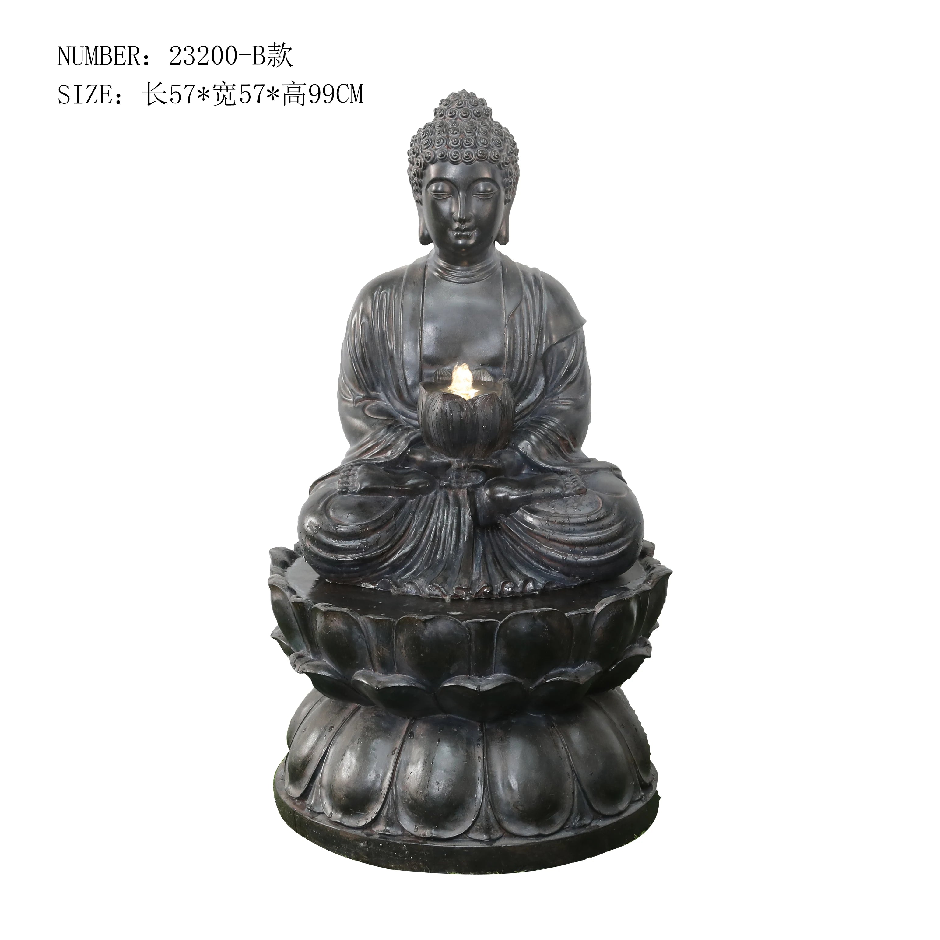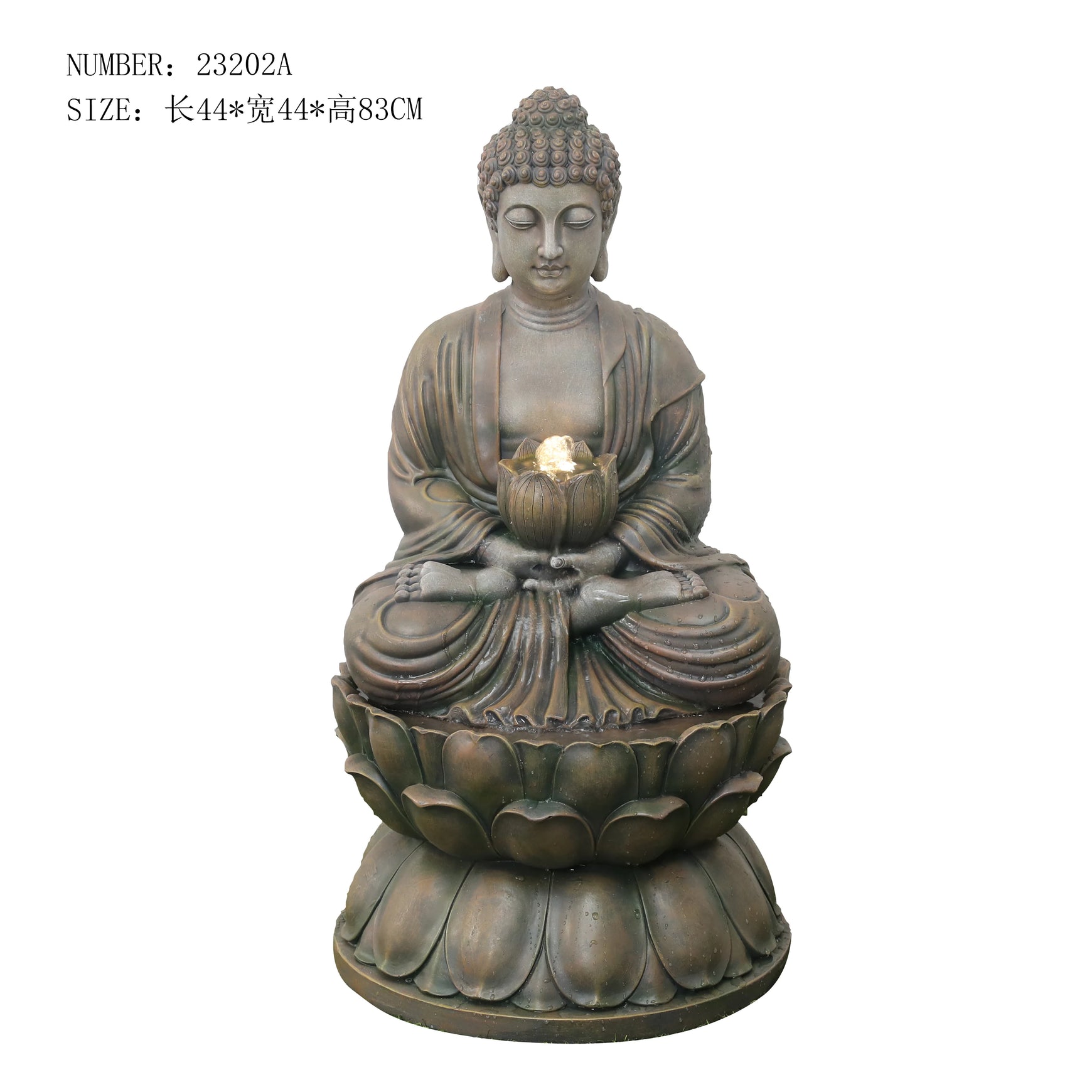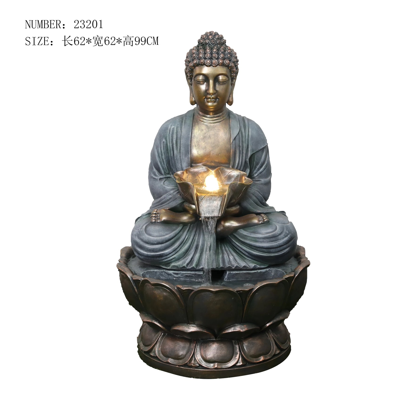 Buddha Water Fountains Indoor with Light Tabletop Buddha Meditation Waterfall Fountain Home Office Hotel Decoration