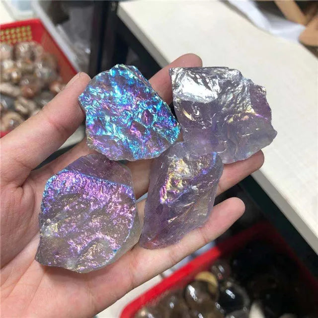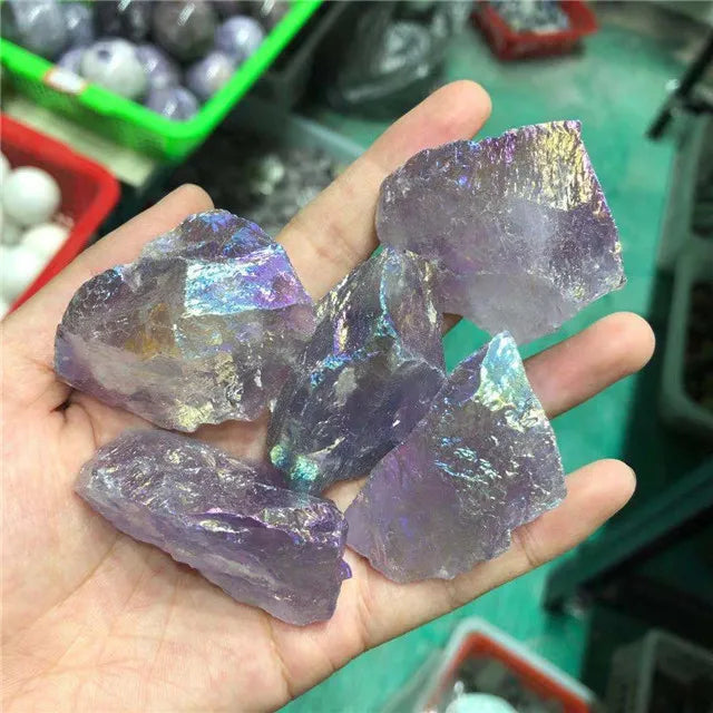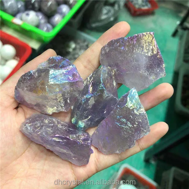 Wholesale crystals healing raw stones natural rainbow aura amethyst rough stones for home decoration