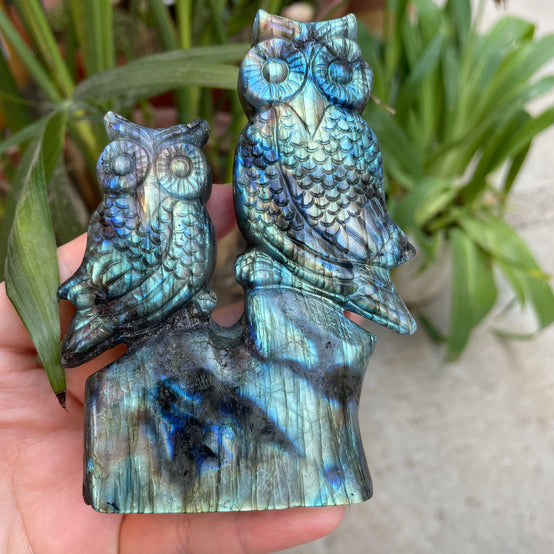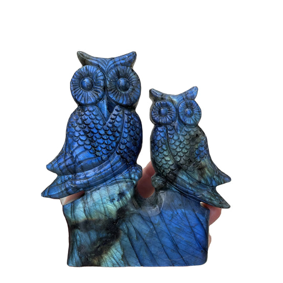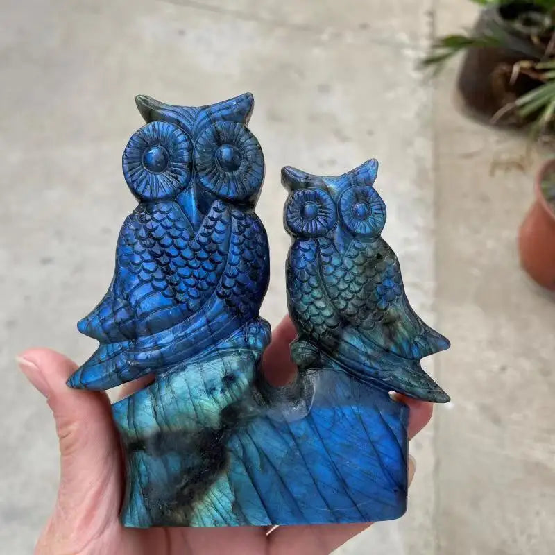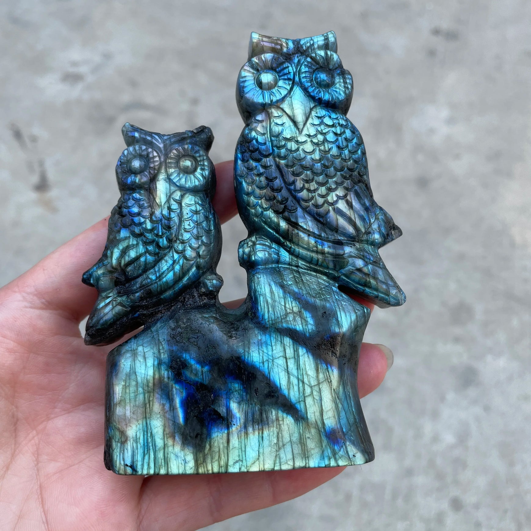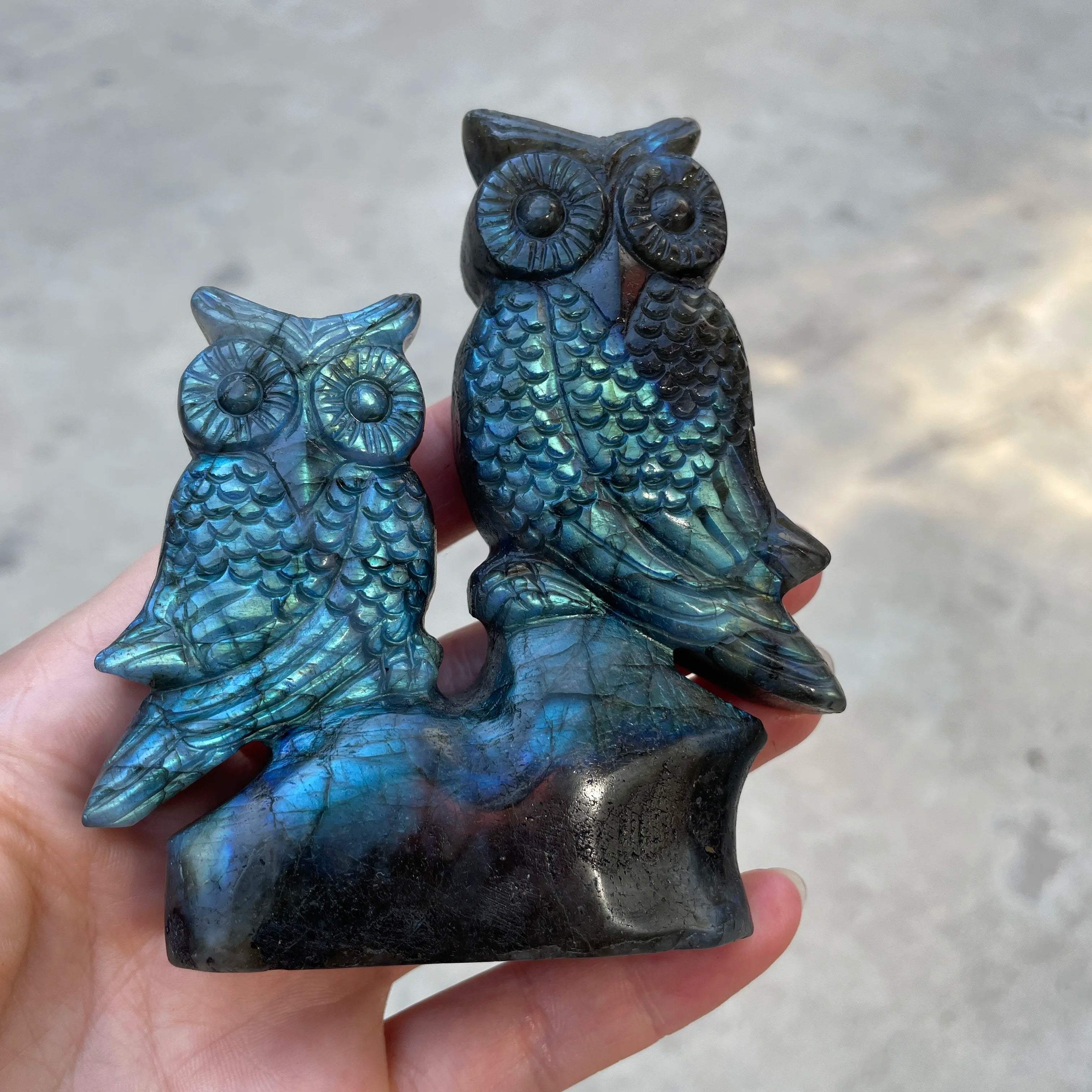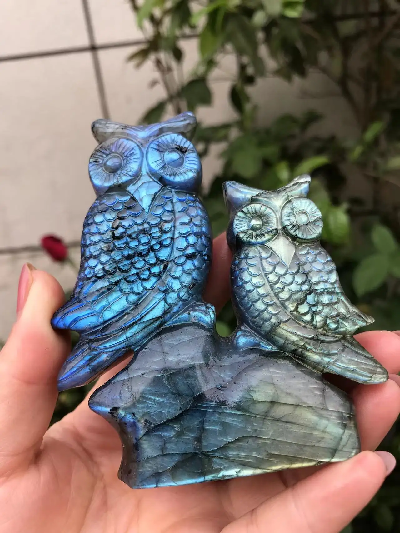 Wholesale High Quality Natural labradorite carving double owls blue flashy For Gifts Decoration Healing