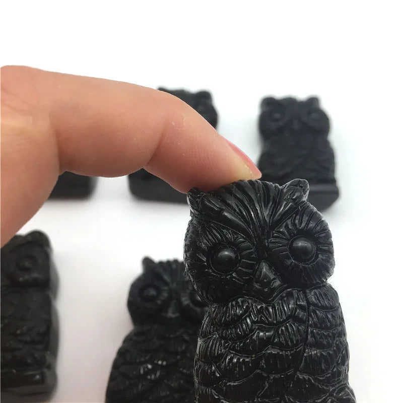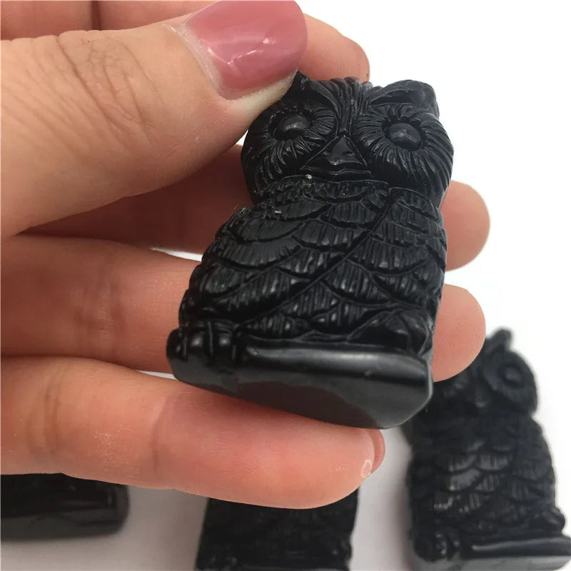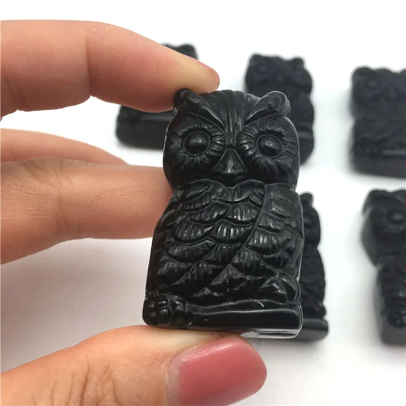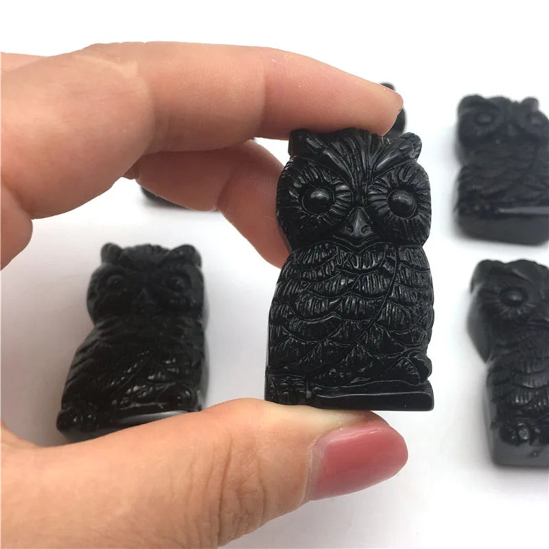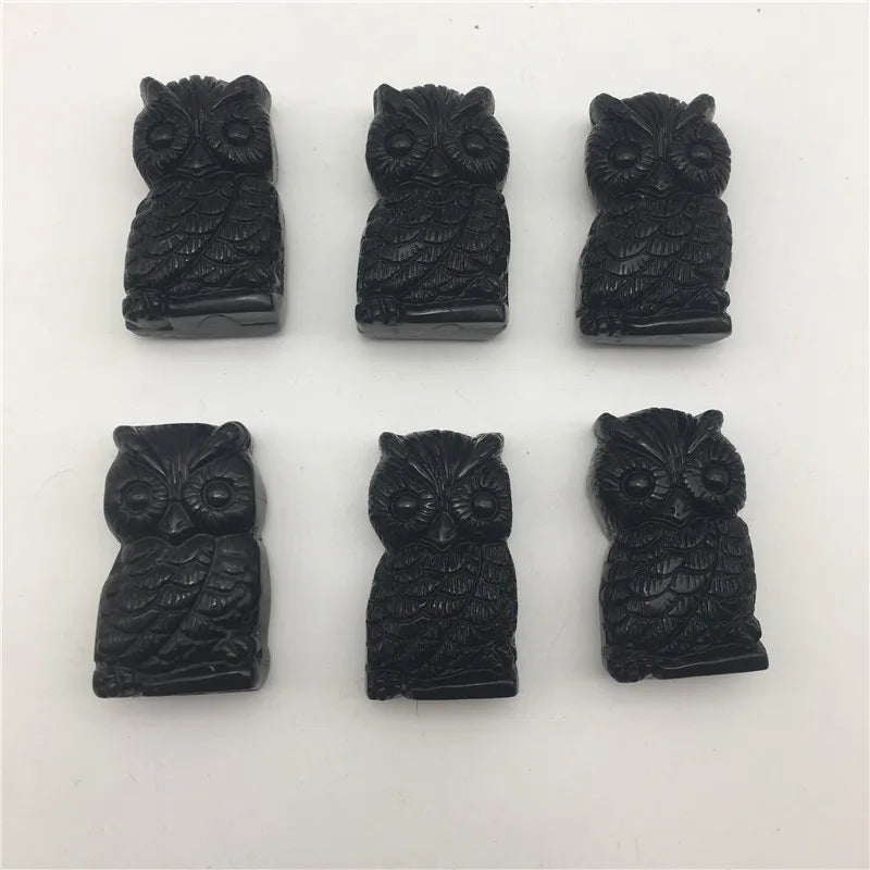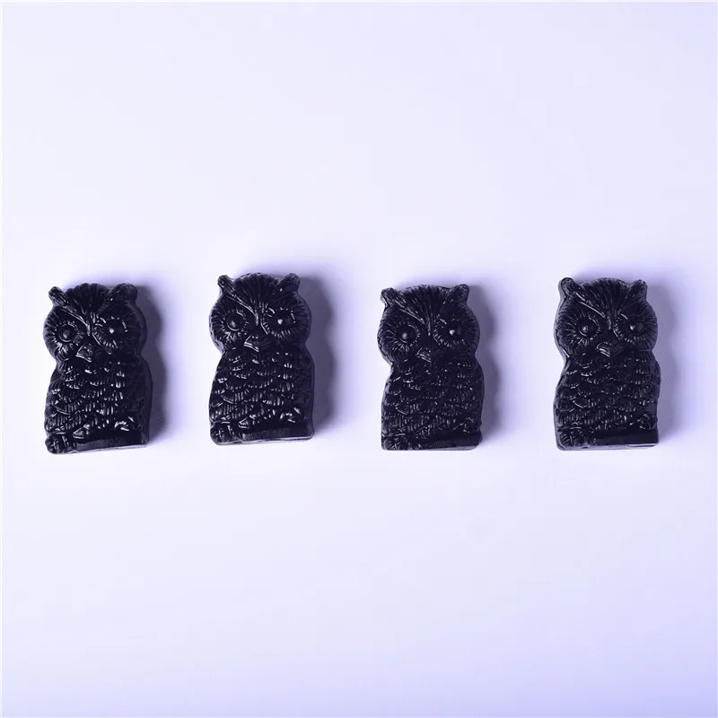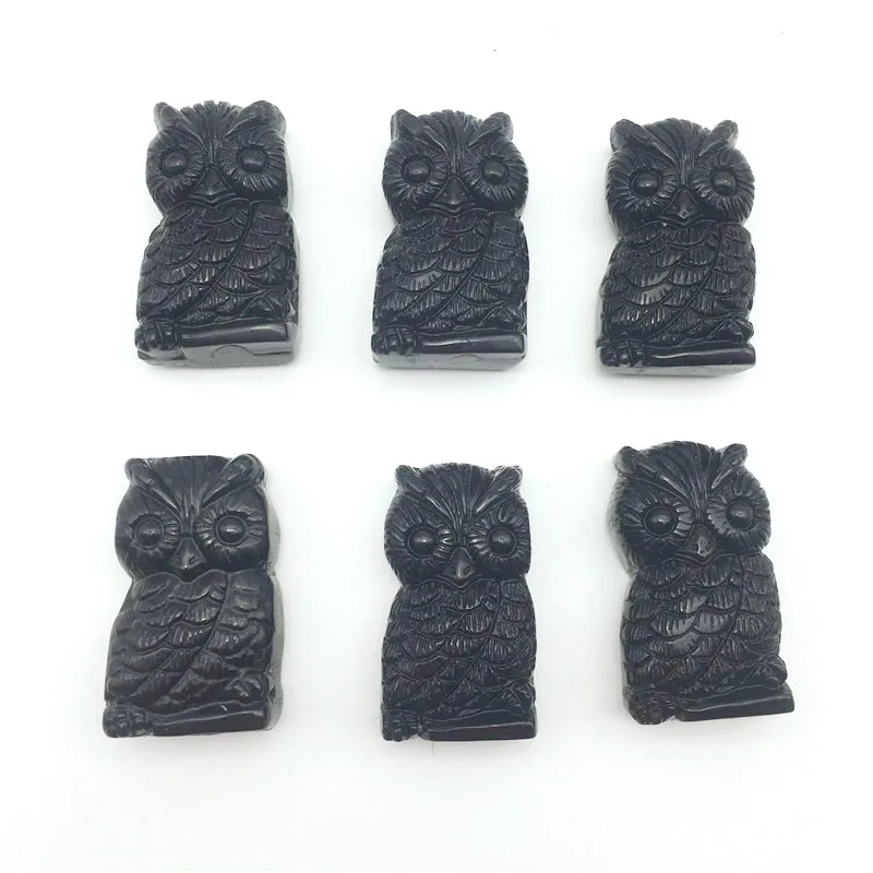 Wholesale Natural Black Obsidian Quartz Crystal Healing Carving Owl For Decoration Gifts