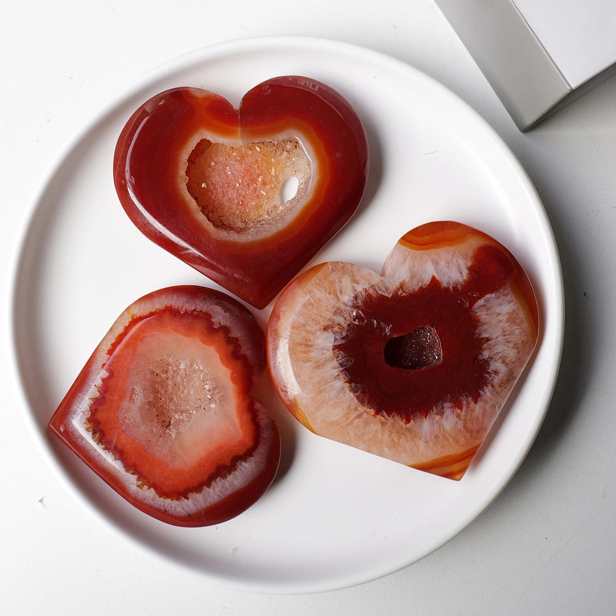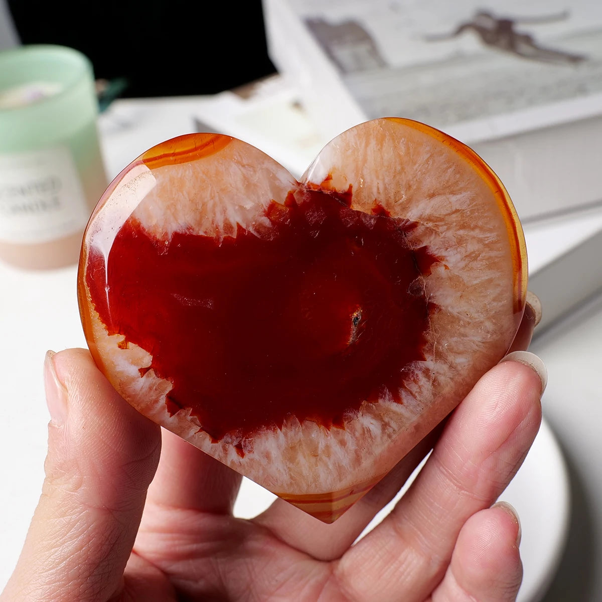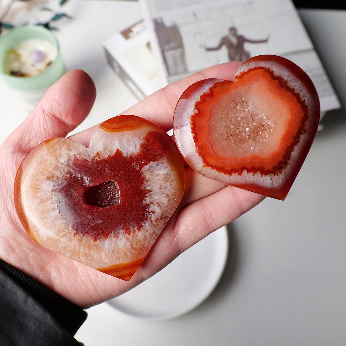 Wholesale natural heal crystal craft Red agate geode heart shape ornament love Reiki crystal for decorative meditation