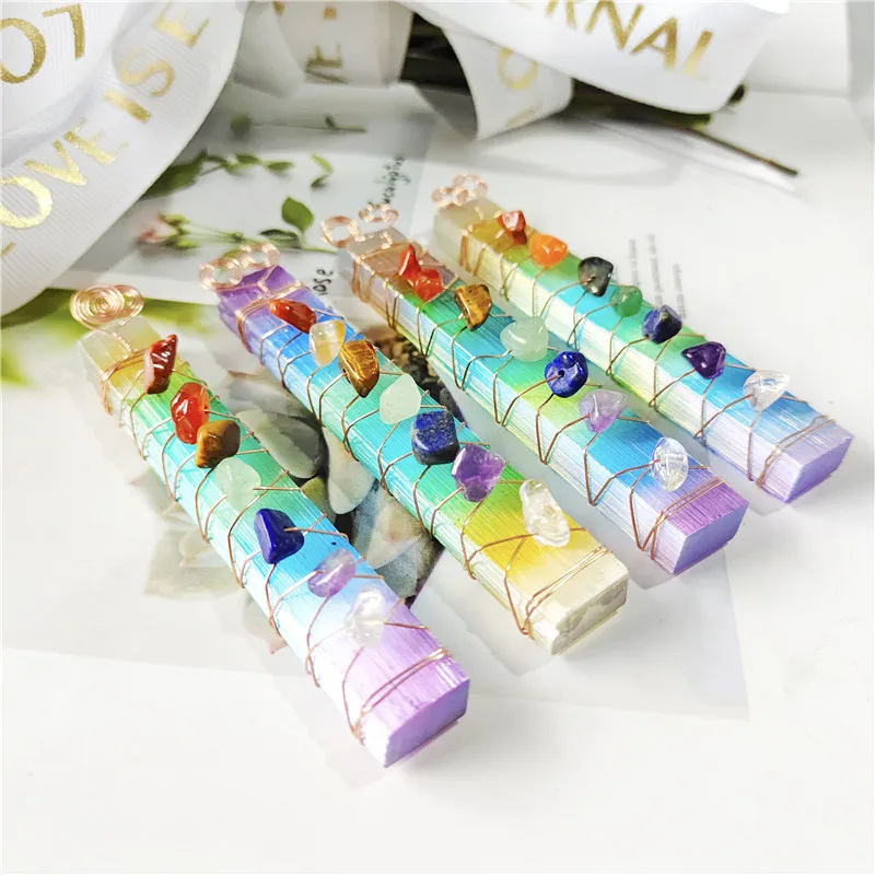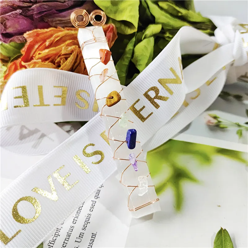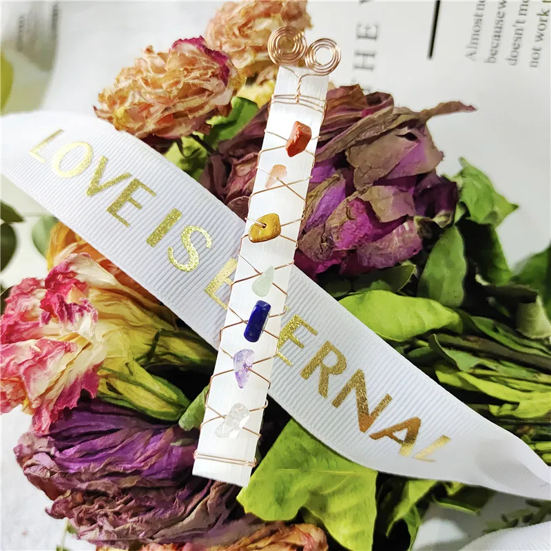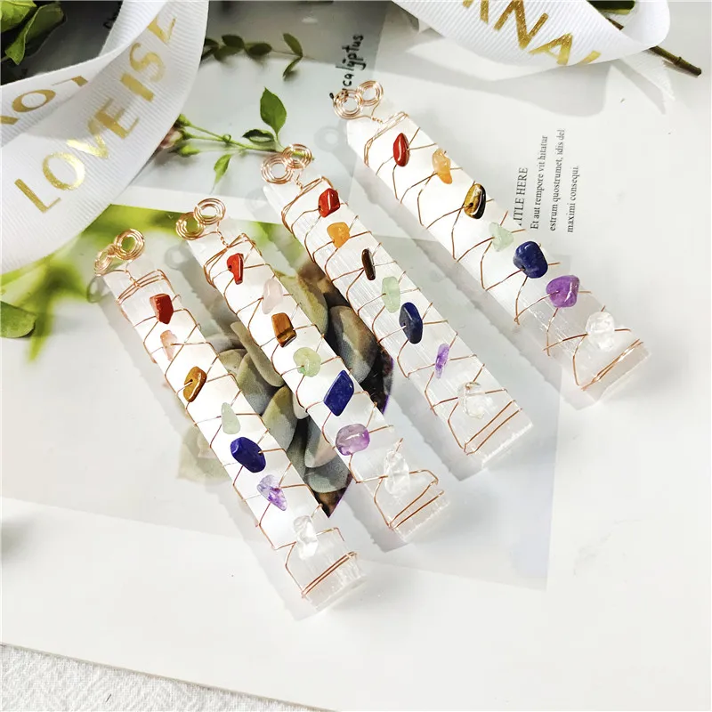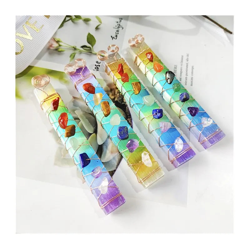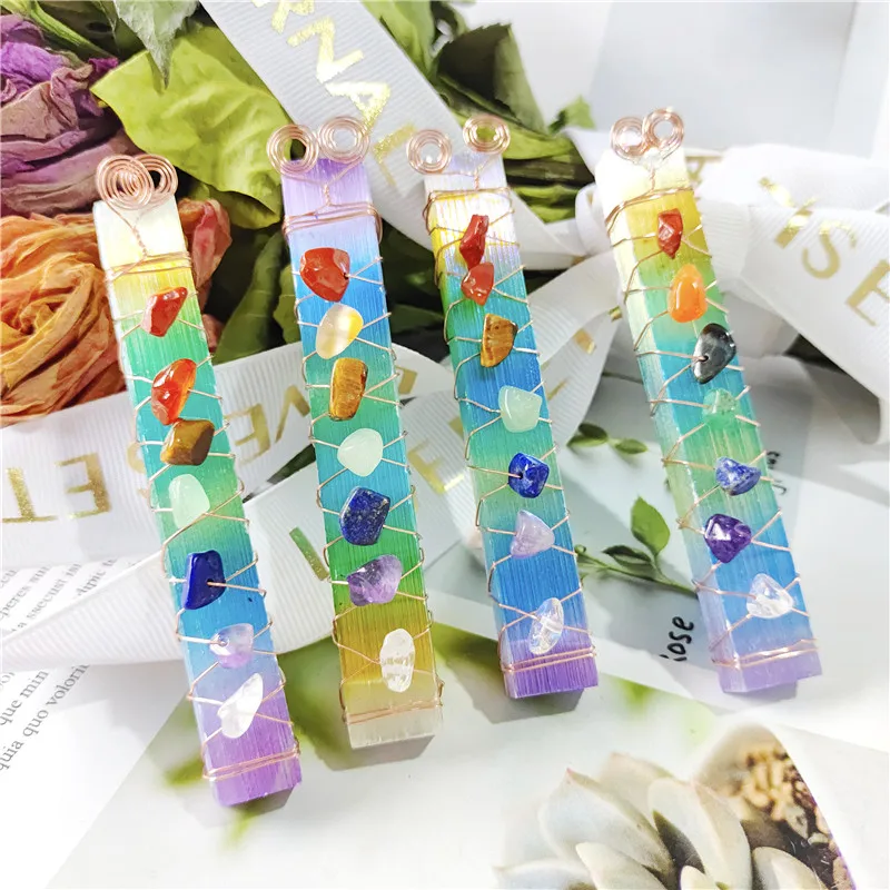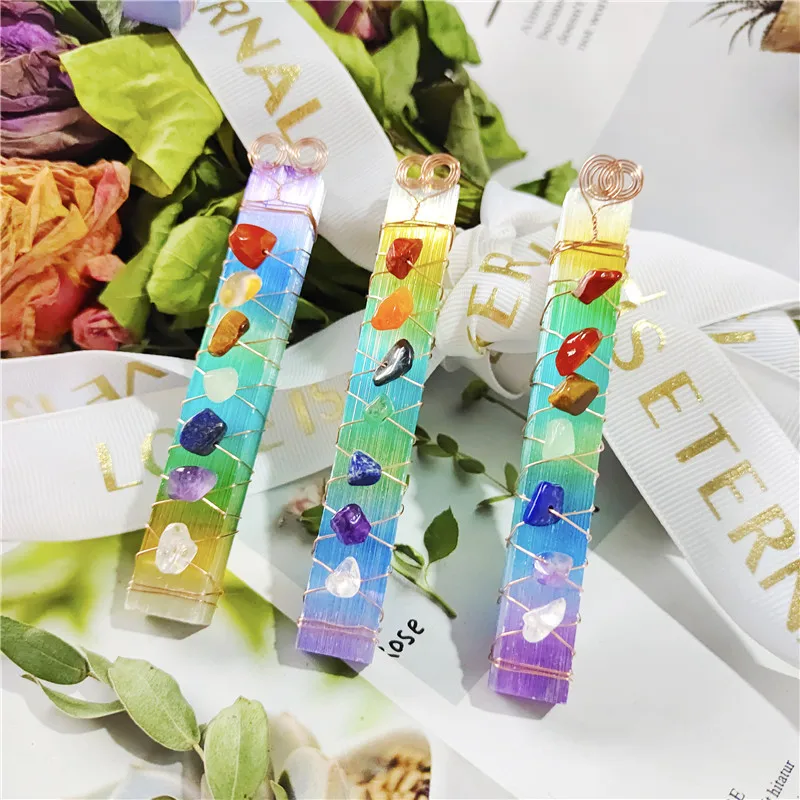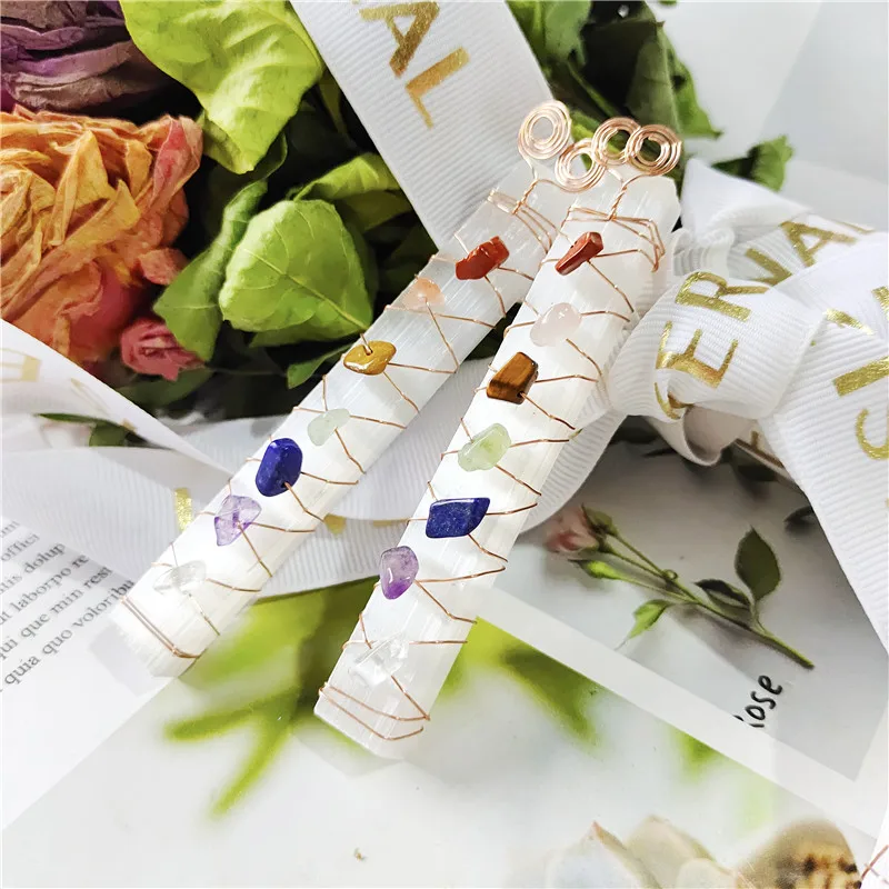 Wholesale Natural Healing Crystal Aura Selenite Sticks 7 Chakras Wand For Yogo Meditation