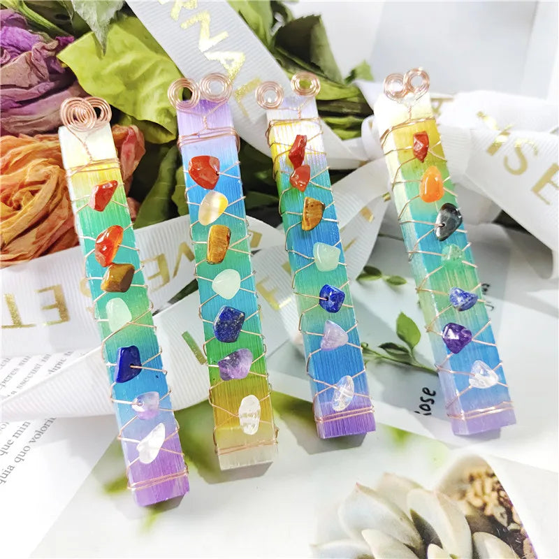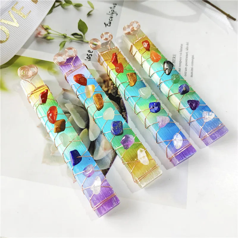 Selenite Sticks 7 Chakras Wand For Yogo Meditation