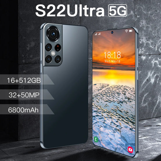 2022 5G Smartphone S22 Ultra 6.8 inch Screen 16+512GB Android Mobile Phones ROM+RAM Original Unlocked Cell Phone