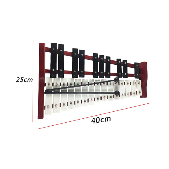 - 25 Notes Glockenspiel: each note is marked on the appropriate bar, easy to learn