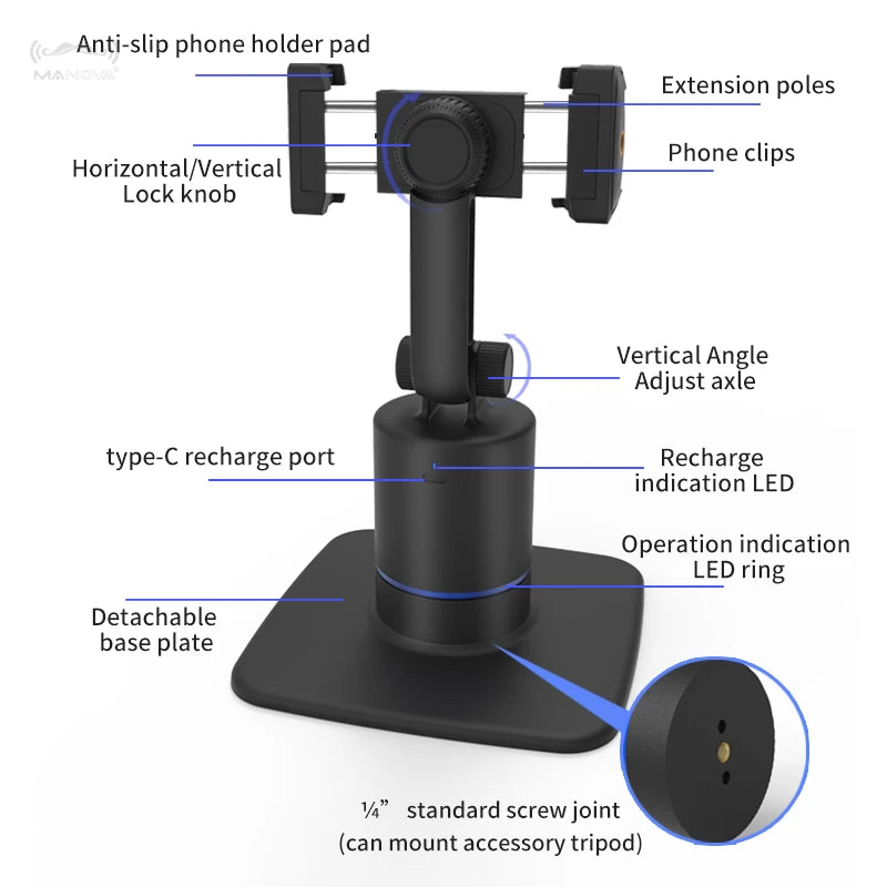 Portable all-in-one auto smart gimbal gimbowl.Features 360º rotation, auto face tracking, and object tracking. Perfect for creating vlogs, TikTok, performance videos, and many more! |