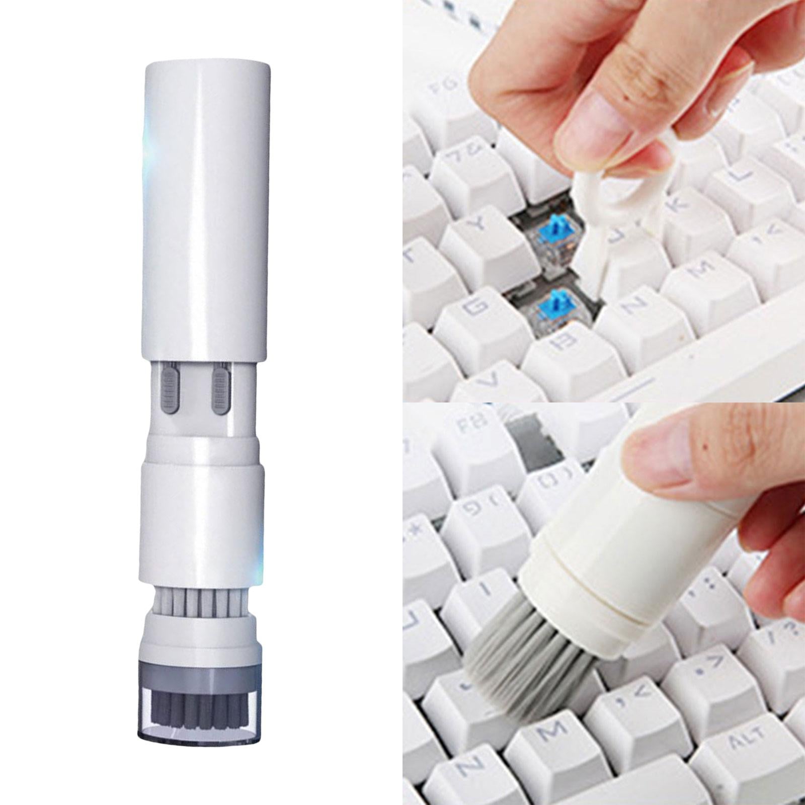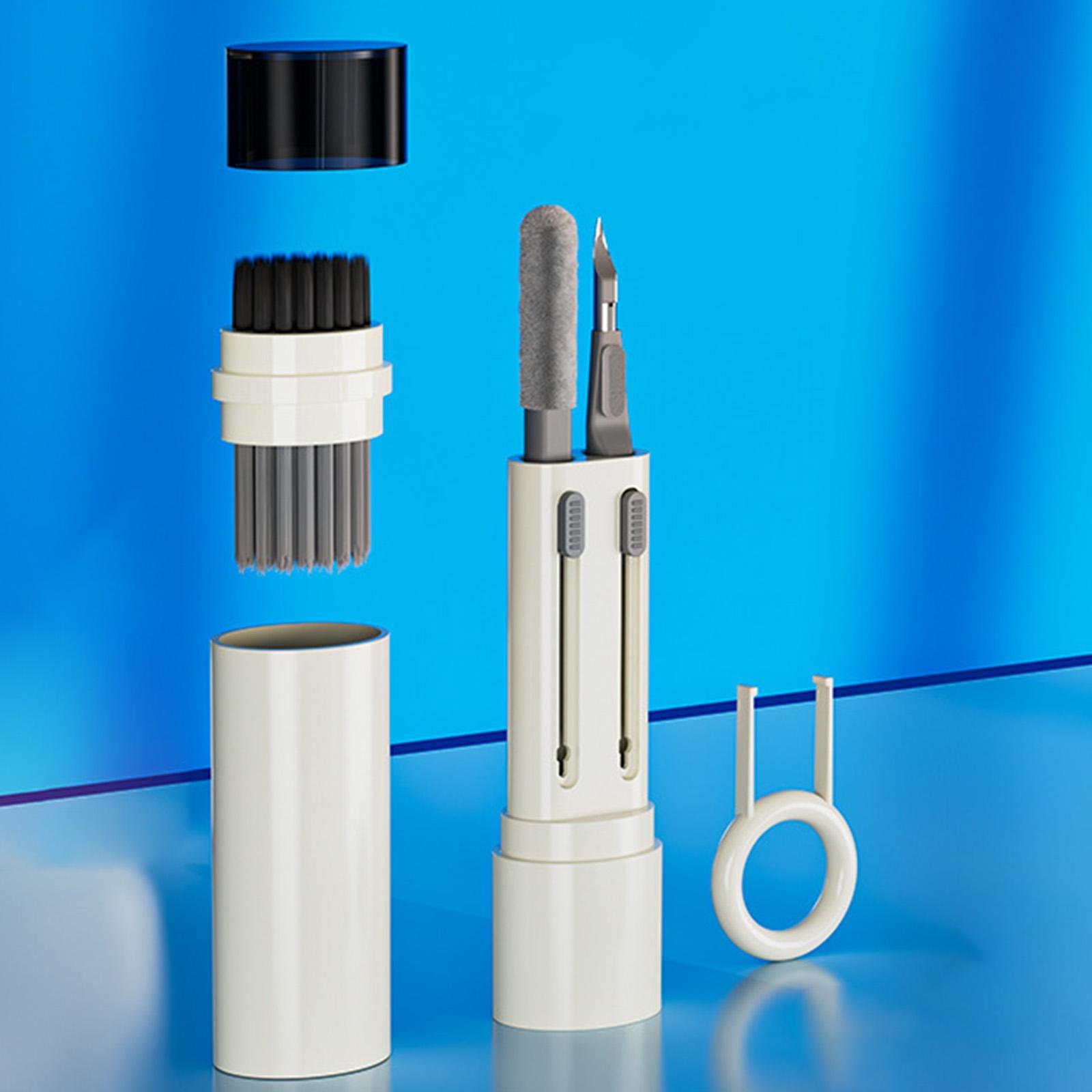 - Telescopic design: Double head, the cleaning pen tip and fine brush can clean and sweep stubborn stains precisely and thoroughly, the flocking sponge cleans inside and the surface of the earphone box, the keycap puller can easily remove and replace the keycap.