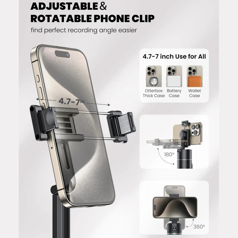 Fold, Rotatable, Face tracking, No APP, Intelligent Gesture, Phone Clip, Adapter Tripod