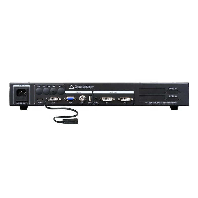 More video input - LED Video Processor 5-channel video input, 1AV, 1 VGA, 1DVI, 1 HDMI, 1USB,Basically covers the civil and industrial uses. All video input switching and enables fast cut and fade transitions.