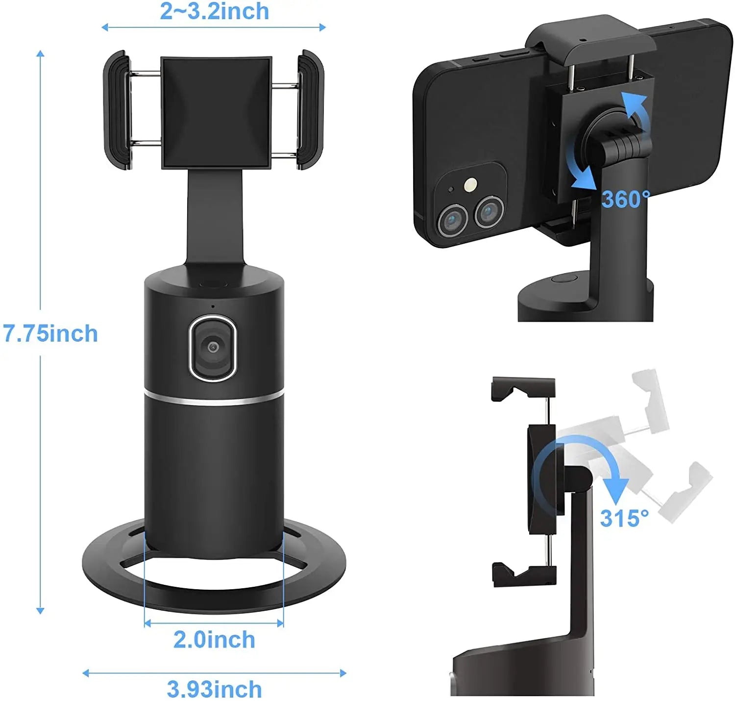 Auto-Face Detection Motion Sensor Ai-Composition Camera Ai Tripod 360 Tracking Rotation Cam Phone Holder
