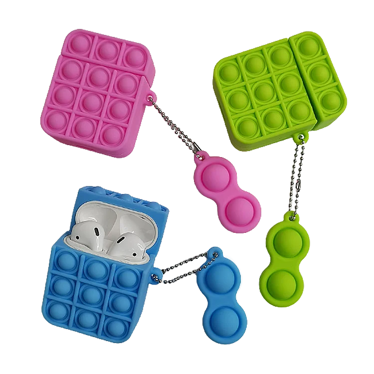 Bagsplaza Reliver Stress Popped It Fidget Toys Push Bubbles Earphone Case Protective Coque Soft Silicone Case For Airpods 1 2