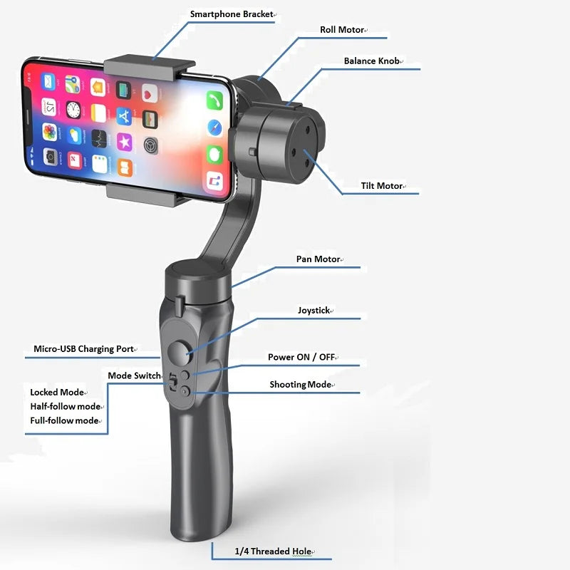 This is a 3-axis smartphone gimbal stabilizer with APP function. Can help achieve ultra-wide-angle synthetic panoramic shooting, Hitchcock, dream space, time-lapse shooting and many other functions, in addition to Ai smart face tracking.
