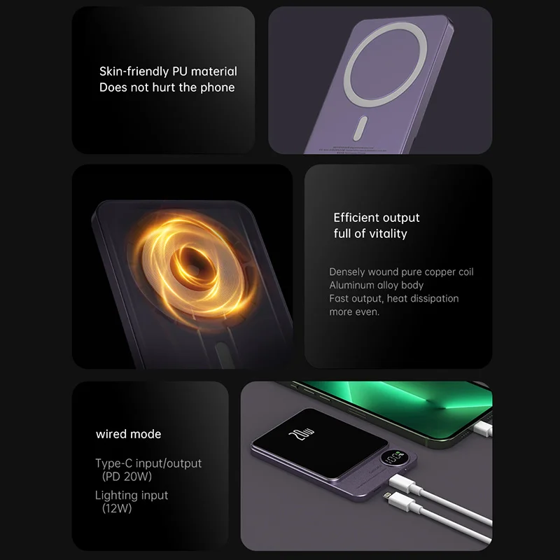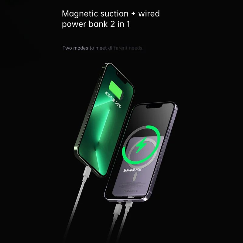 EONLINE Power bank 10000mAh Magnetic Power Bank Wireless Charger Mini Slim External Auxiliary Spare Battery For iphone 12 13 14
