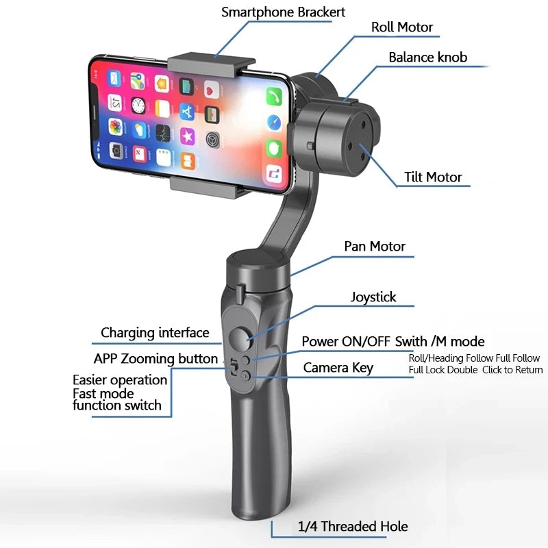 F6 3 Axis Gimbal Handheld Stabilizer Action Camera Holder Anti Shake Video Record Smartphone Gimbal Stabilizer For Phone