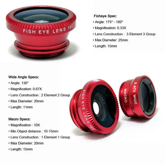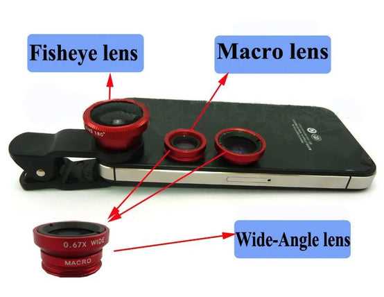 Full set Cell phone 3-in-1 Wide Angle Macro Fisheye Lens Camera Kits Mobile Phone Fish Eye Lenses