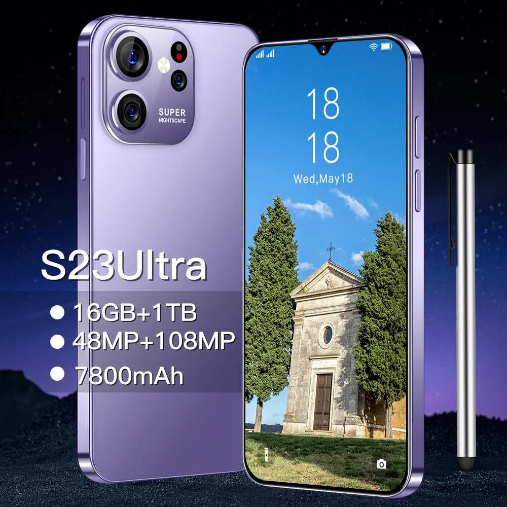 Global Version S23 Ultra PHONE 16GB+ 1TB Full Screen Mobile 6.8Inch HD cell phones deal 48+108MP 7800mAh 5G Smart phones