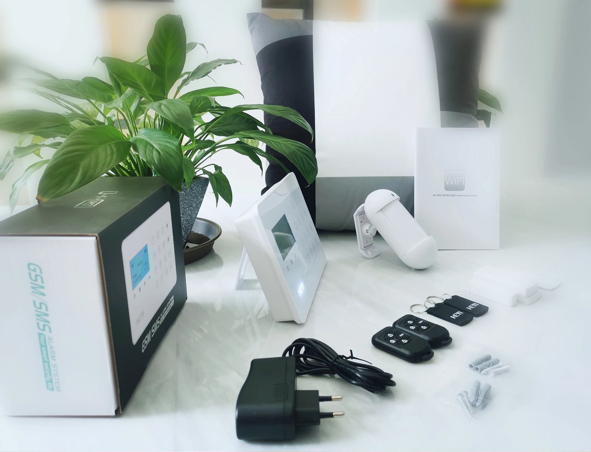 Home automation cellular jammer mobile phone Application GSM Alarm System LAN intrusion Fire Water Leakage security HEYI H7