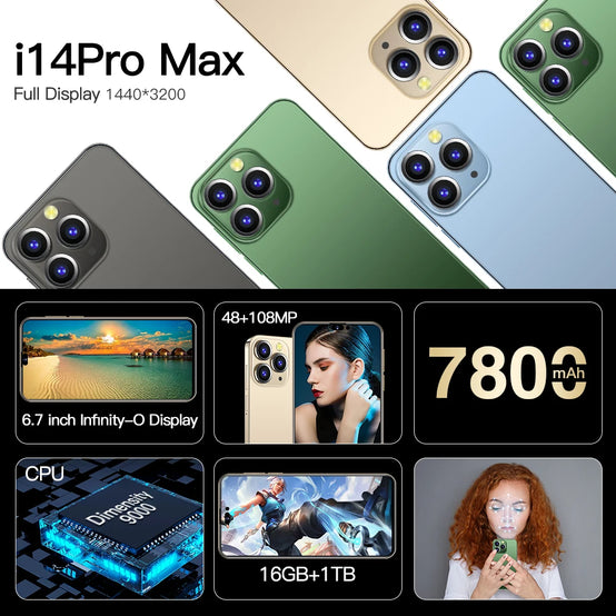 Hot Selling Phone i 14 Pro Max original 6.7 inch 16GB+1TB Unlocked Dual SIM 5G Smartphones Android 12 Cell Smart Mobile Phones