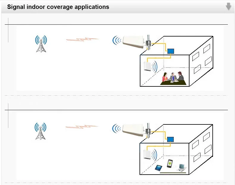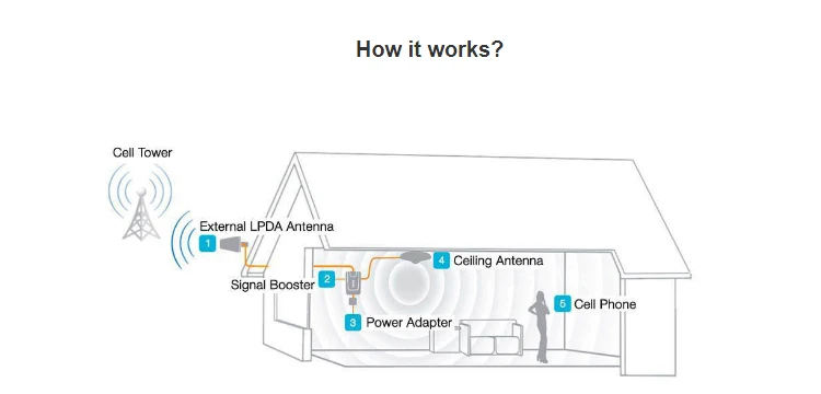•The outside antenna catches low signal from operator servicer’s base station and delivers it to cell phone repeater through the connection cable (coax).