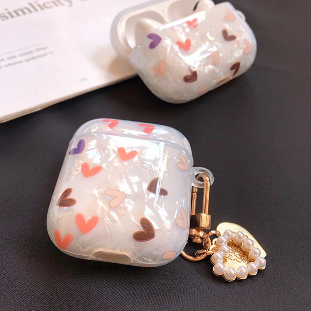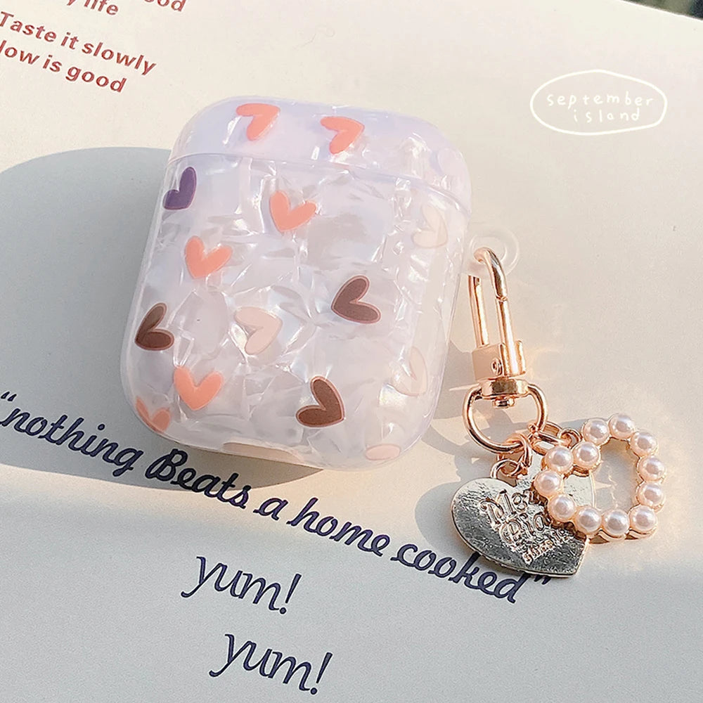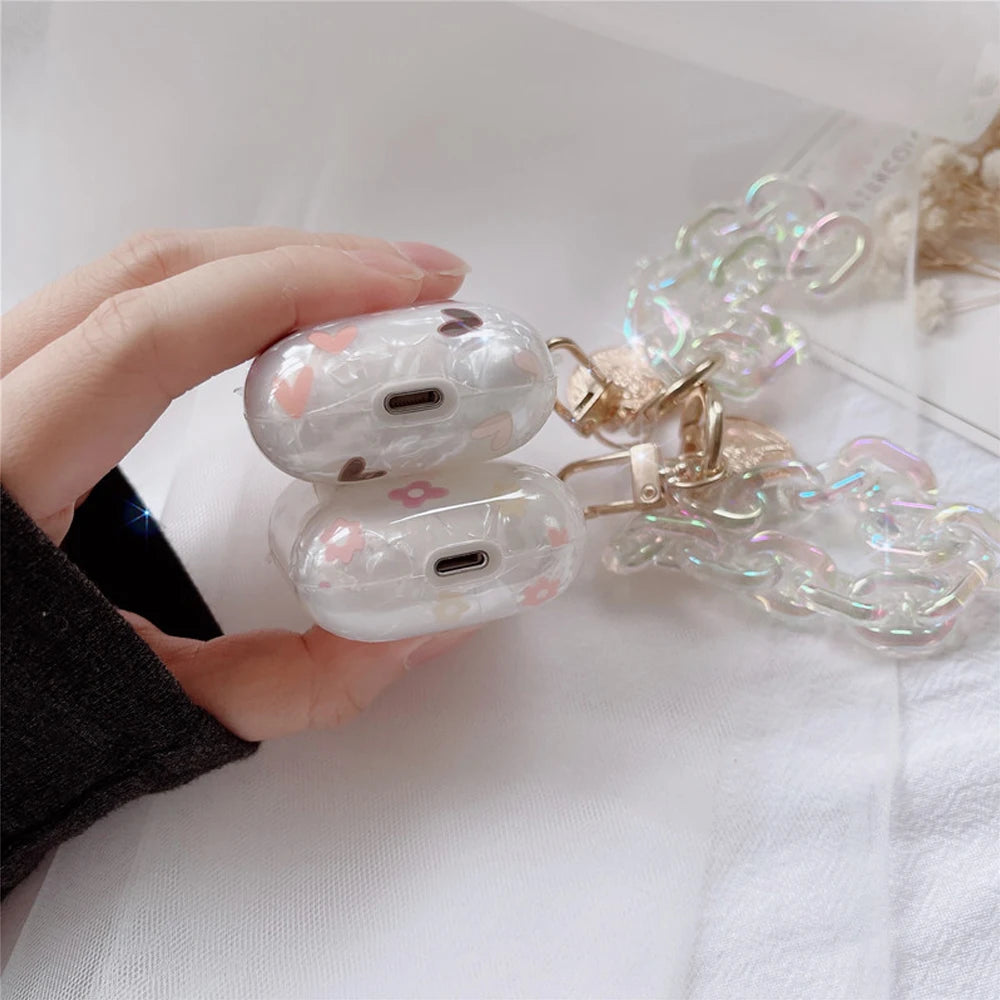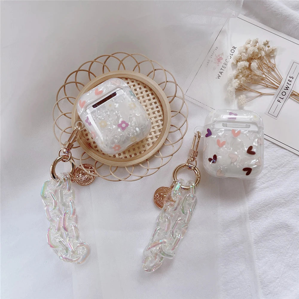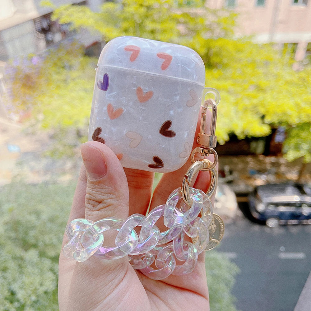 Luxury Lover Heart Pearl Case for Apple Airpods 2 Cover Bracelet Chain Case AirPods 2 GEN 1 Cases Earphone