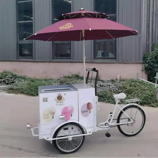 Because of its self-sufficiency, mobile business by bike holds an advantage over local shops because mobility means flexibility. The bike can reach unconventional places, all while offering the wide product selections.With an bike you've got a business that can be anywhere, weddings, birthdays, family reunions, company team building exercises, or private parties in style! Or just roll out wherever you feel someone might be in need of a cool treat!The ice cream bike is created for mobility at car free downtown areas and public spaces. It is a turn of the tide for small business owners! With an ice cream bike, you've got a business that can be anywhere at any time without any fuel costs.
