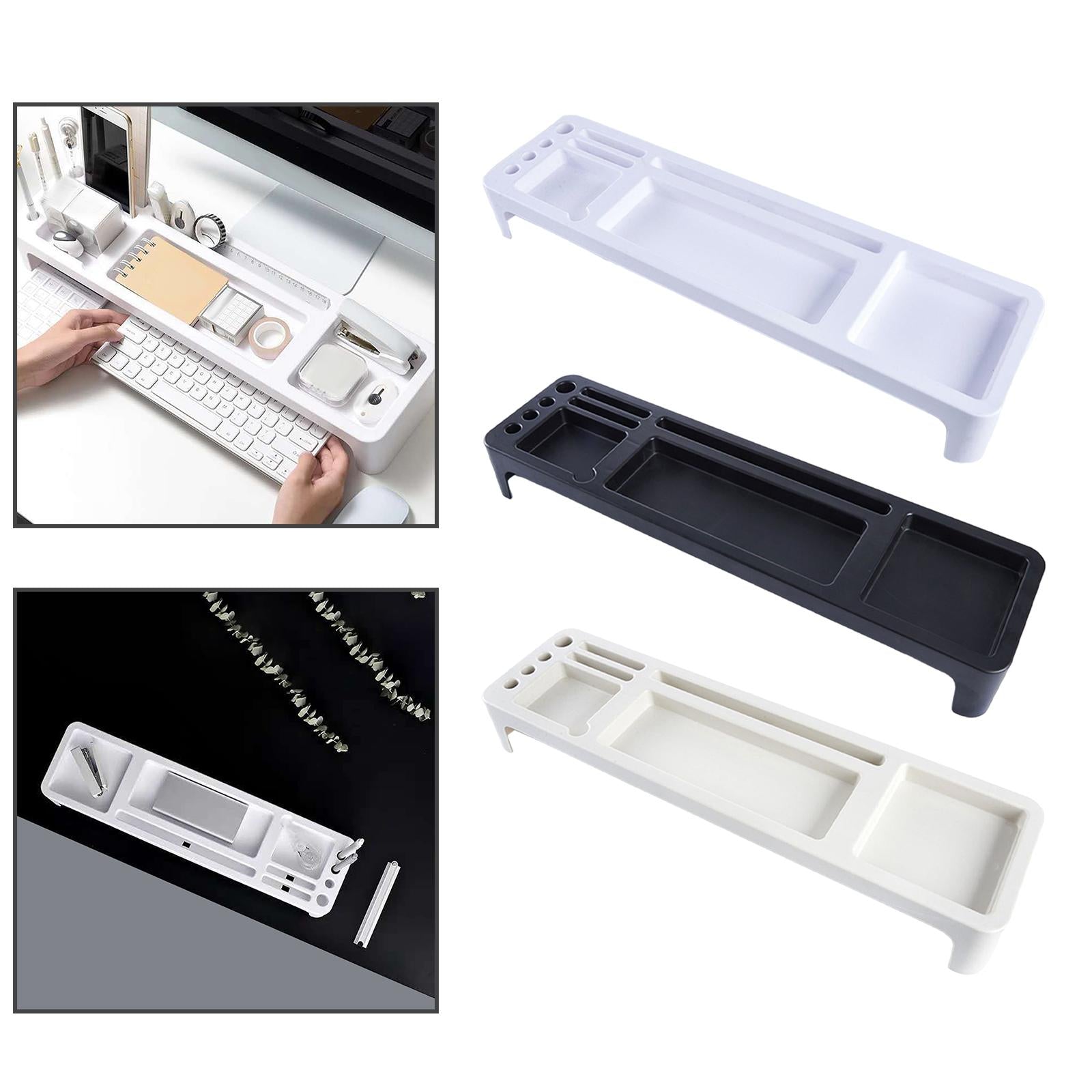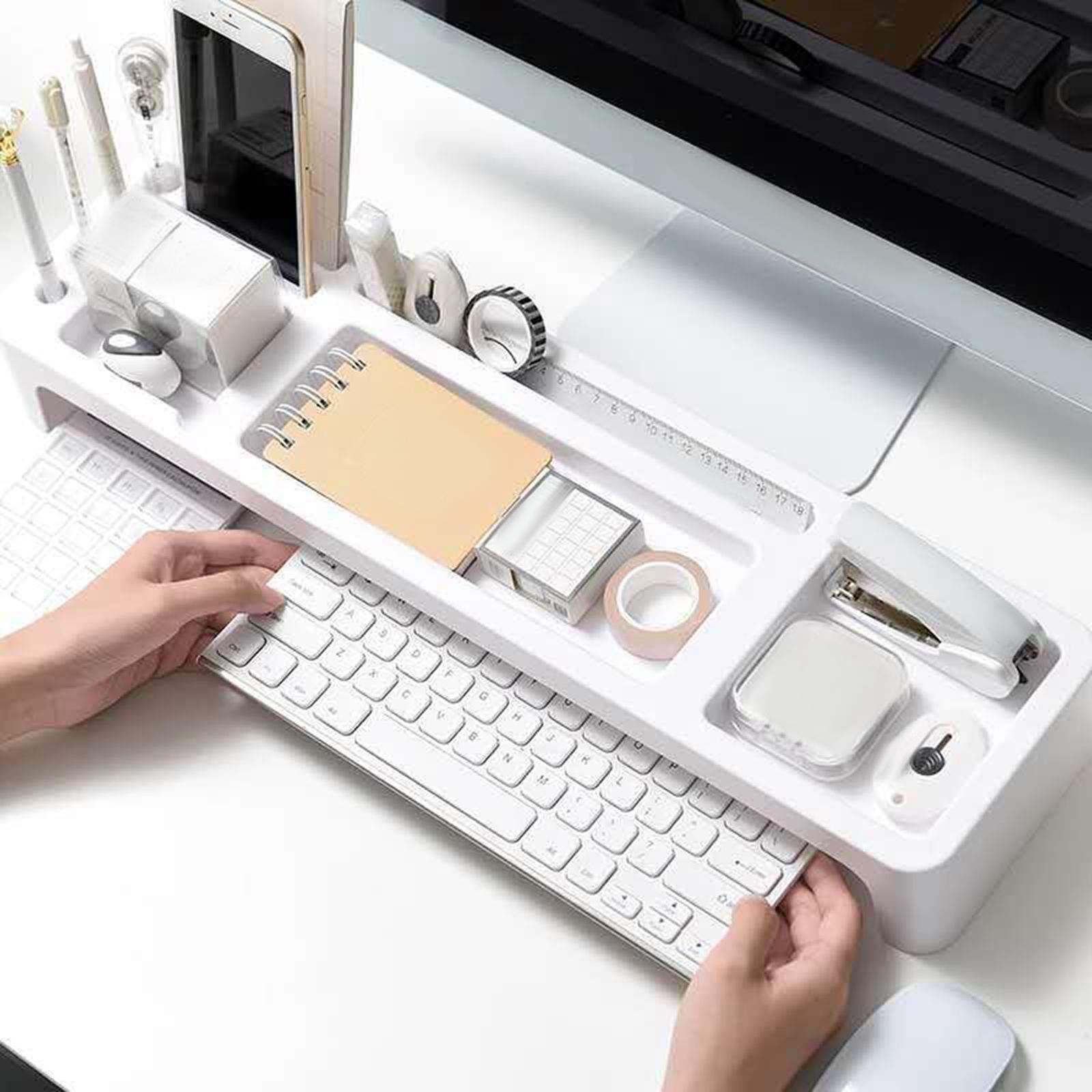 - Desktop Organizer: The desktop stand can hold phone, pen, and drinking glass. The keyboard and mouse can be placed under the desk to perfectly organize your work area or office.