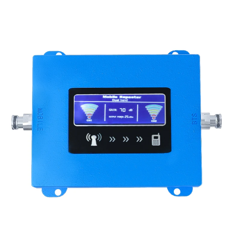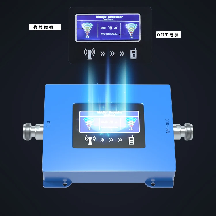 1. Find the strongest direction and position of the received signal for mobiles at the top or the periphery of the building, as the location for installing the outdoor antenna, pay attention that the location should be paid to lightning protection. The installation height should not be higher than the lightning protection network of the building. If it is higher than the lightning protection network. If it is necessary, install a lightning rod 1 meter above the outdoor antenna and ground it well. 2. After selecting the appropriate location, fix the outdoor antenna to the wall or bracket. 3. Select an appropriate location in the relevant indoor location (close to the power supply and the outdoor antenna end, rain-proof, sunshine-proof and ventilation is best location) install indoor straight machine, and fixed to the wall or bracket. 4. Lead the outdoor antenna to the 'BTS' (outdoor) interface, and the connection between the outdoor antenna and the amplifier is completed. 5. After defining the indoor antenna installation position, fix the antenna. 6. The indoor antenna connected to the amplifier, one port connecting to the indoor antenna interface, and the other port connecting to the repeater's 'MOBILE' (indoor) port.