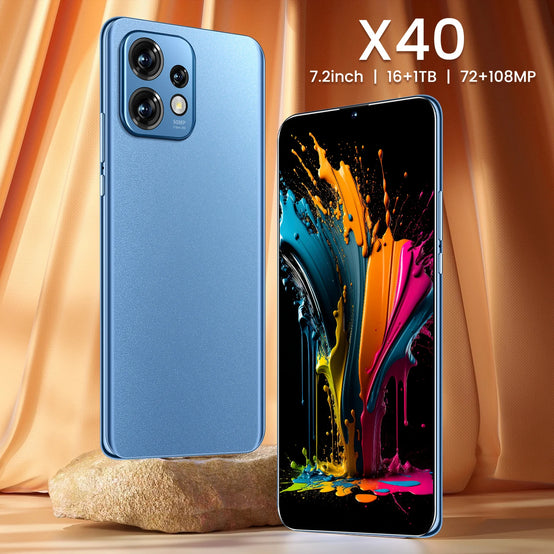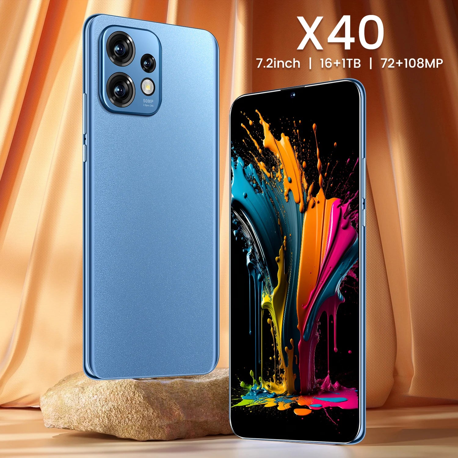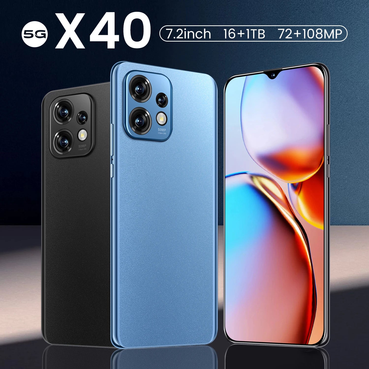 New Arrival X40 Phone 16GB+1TB 72MP+108MP Android 13 Unlocked Cell Phone Dual SIM Card Mobile Smart Phone Dropshipping