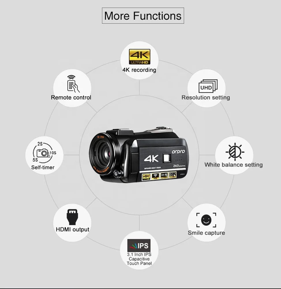 ORDRO New 4K digital video camera wifi video camera night vision Camcorder with hotshoe support microphone digital video camera