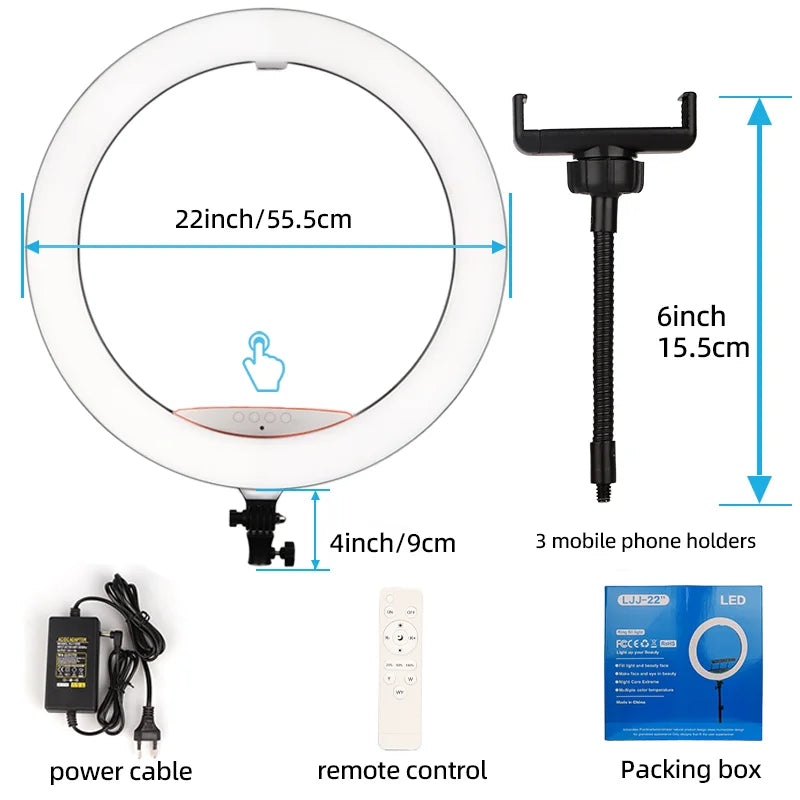 Product Keywords photographic rechargeable 3 phone holders custom video 22inch 22 inch lamp selfie led ring fill light with tripod stand