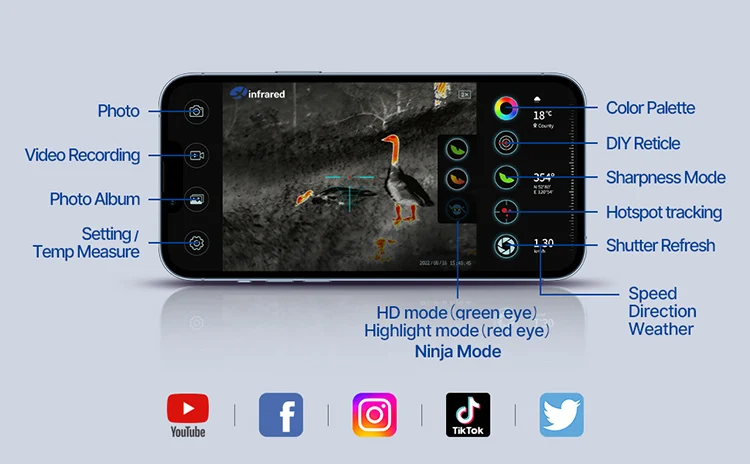 raccoon and waterfowl during the day/night/fog, With a highly rugged all-metal body weighing 18.5g, the X2 thermal monocular is easy to slip into your pocket and keep track of your target anywhere.