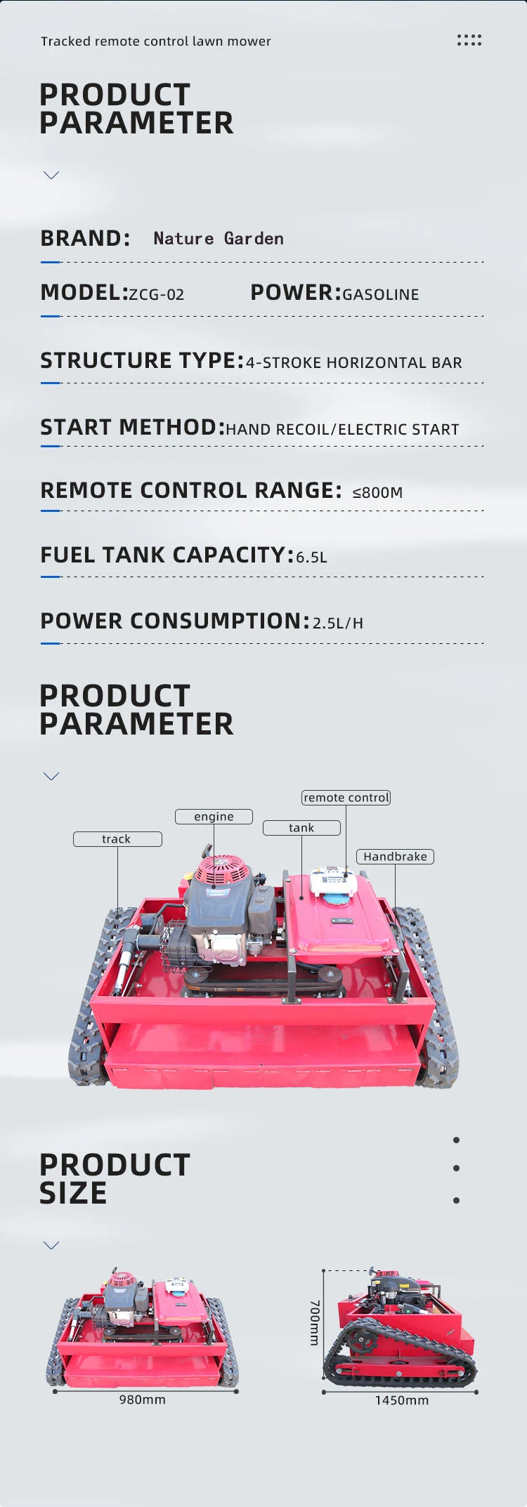 Caterpillar remote control electric start lawn mower cutting 2 meters high grass 1070mm cutting width manufacturer