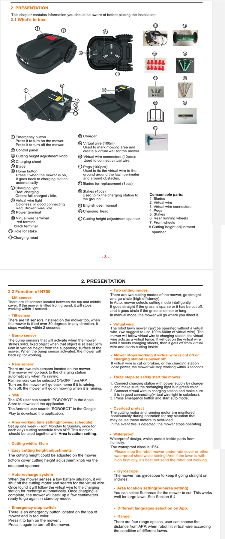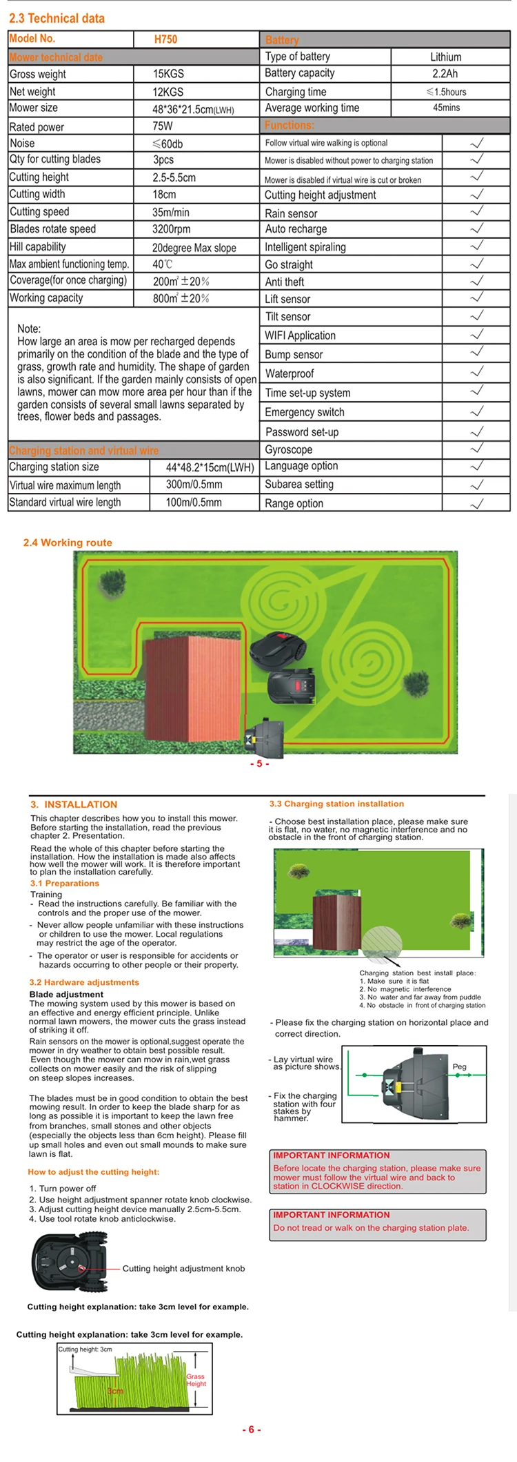 3. Intelligent operation: The robot lawn mower can control the wheels, forward, backward, turn left, turn right and other basic operations through the embedded intelligent software. The intelligent operation can be automatically adjusted according to different mowing methods.