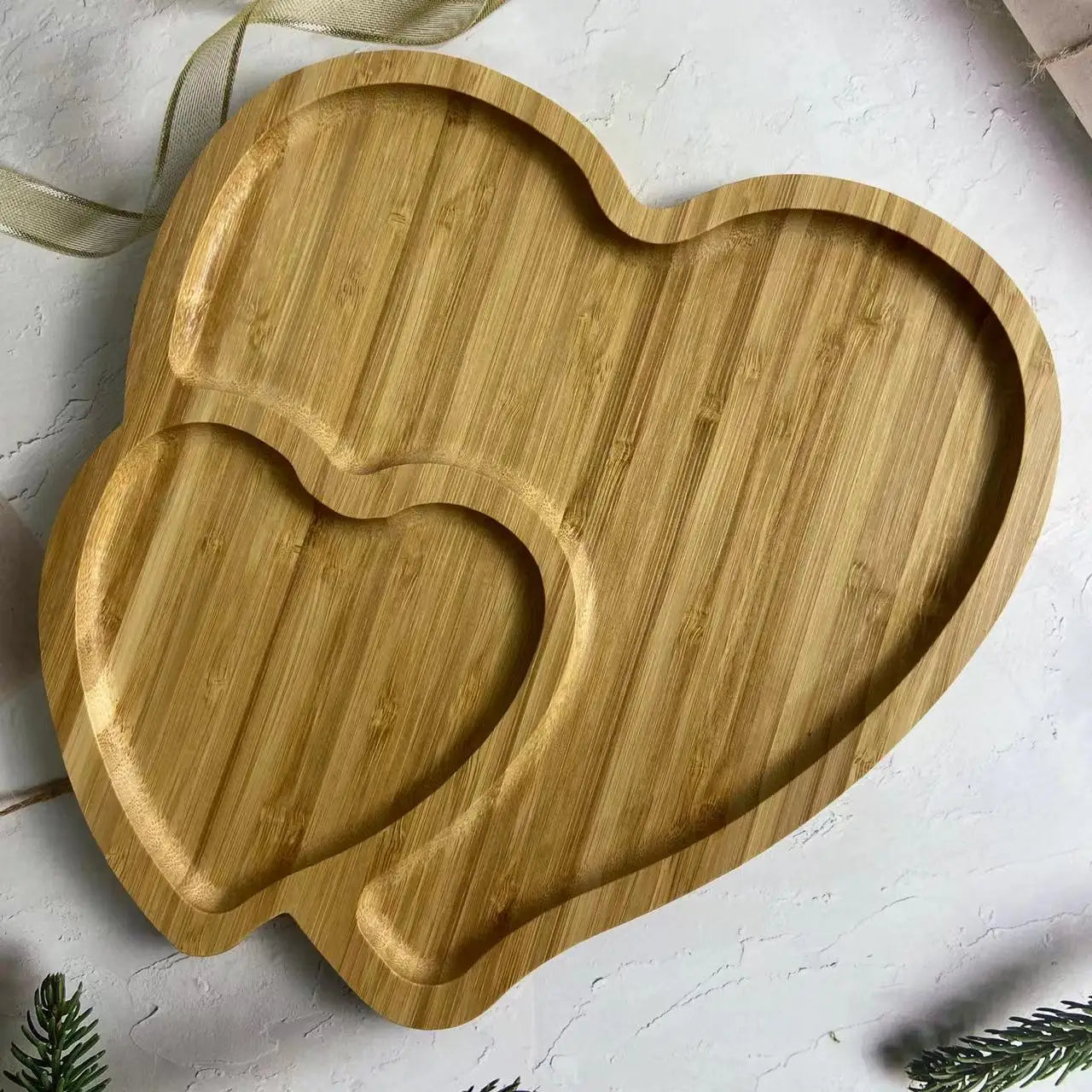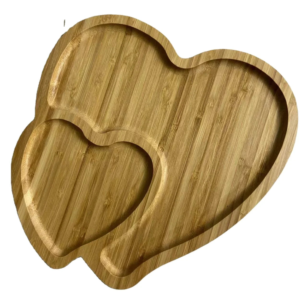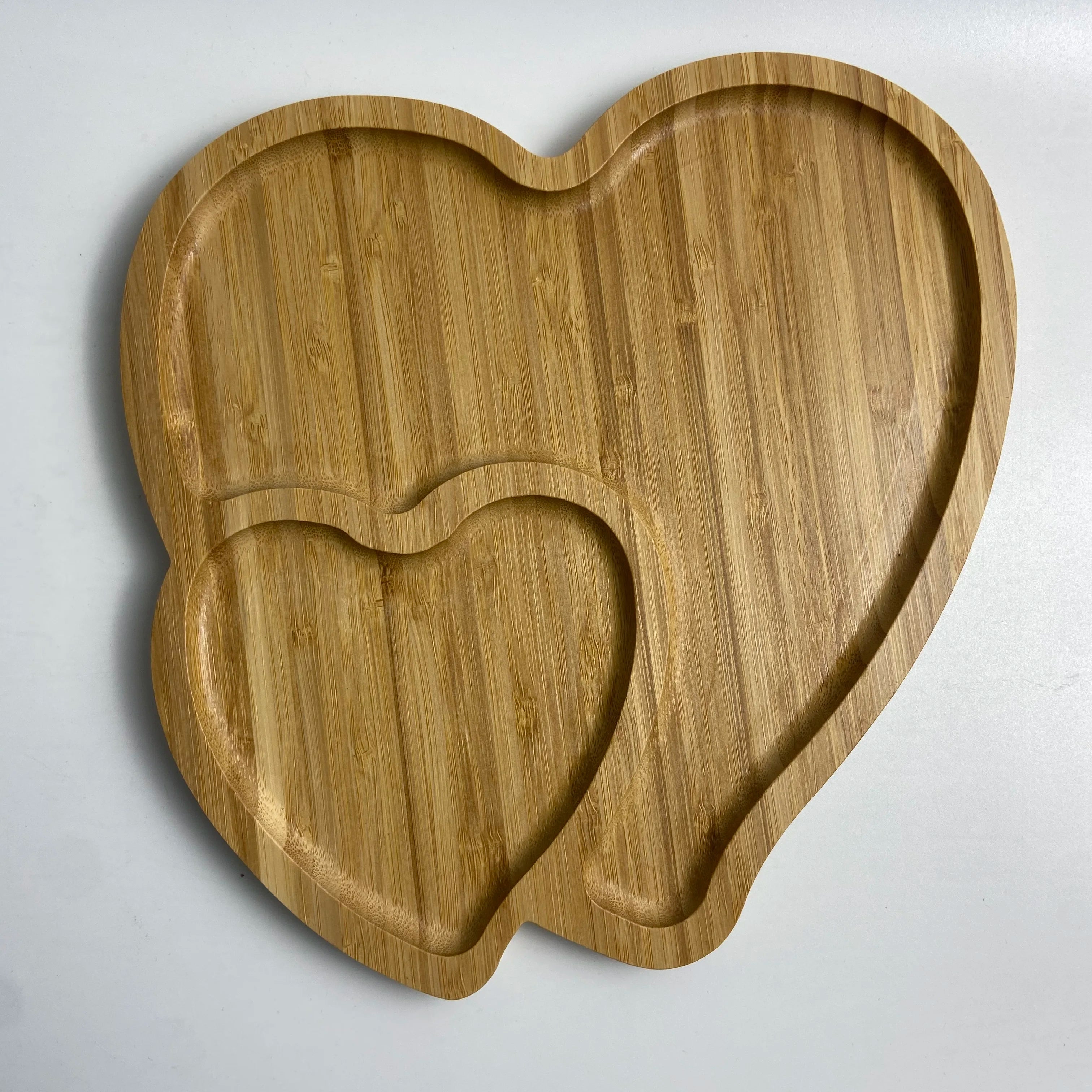 Diyue Custom Logo 2022 Christmas Gift Double Heart Shape Plates Eco Bambum Platter Fujian Bamboo Serving Snack Plate
