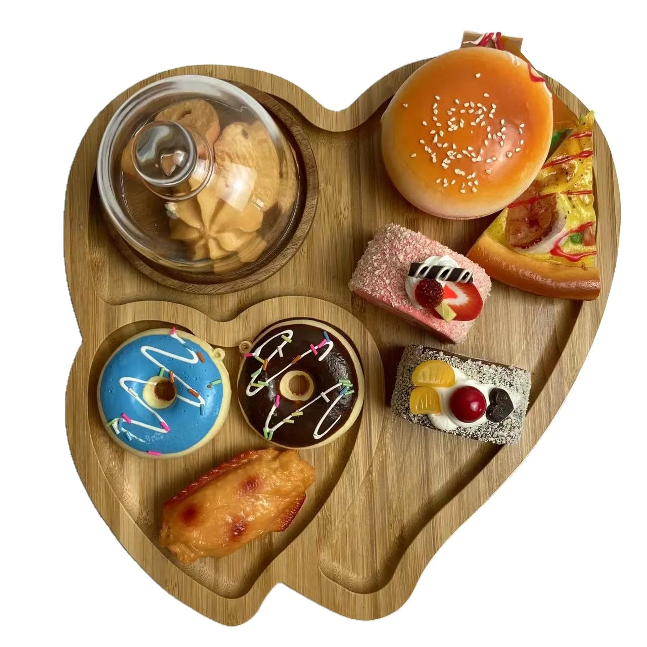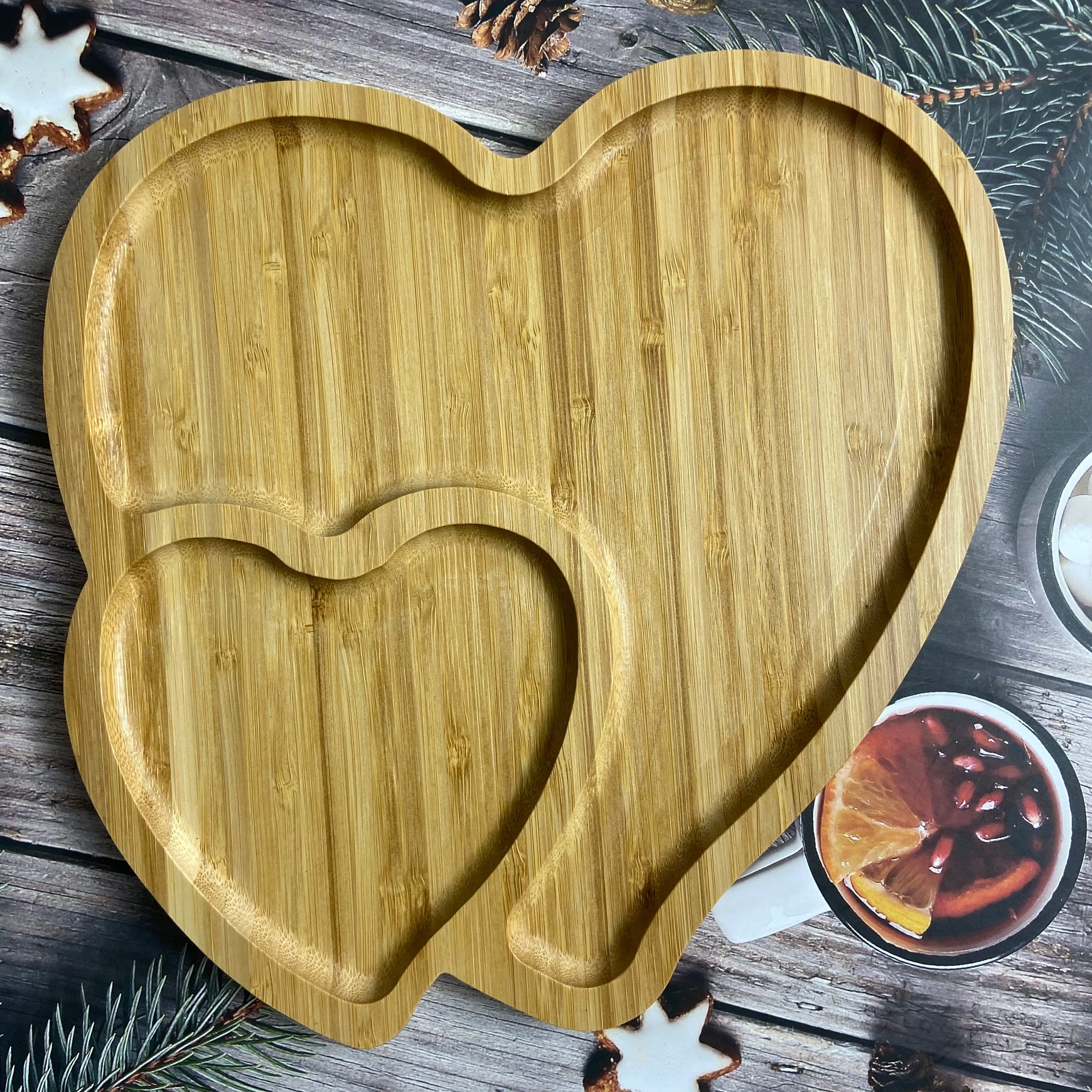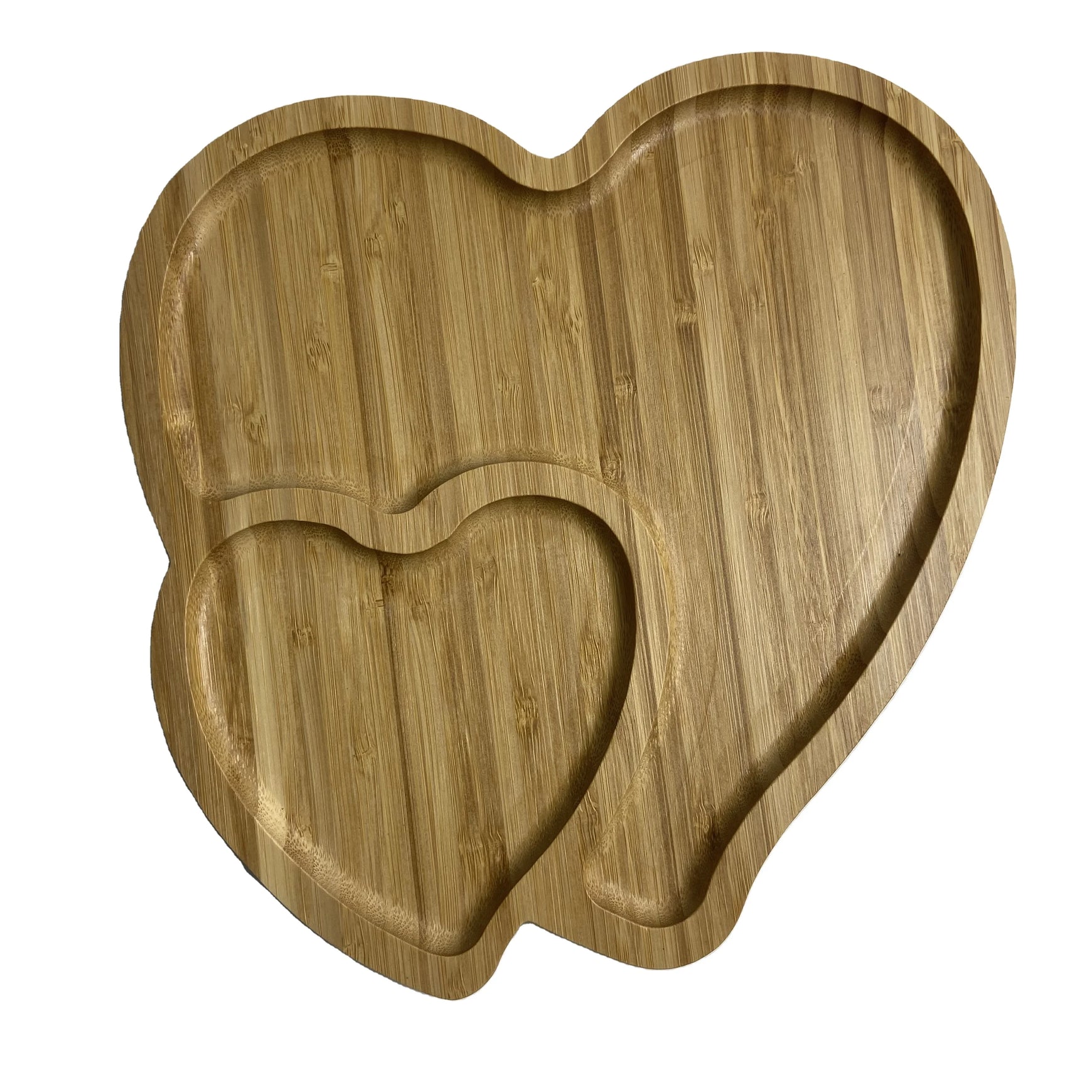 Diyue Custom Logo 2022 Christmas Gift Double Heart Shape Plates Eco Bambum Platter Fujian Bamboo Serving Snack Plate