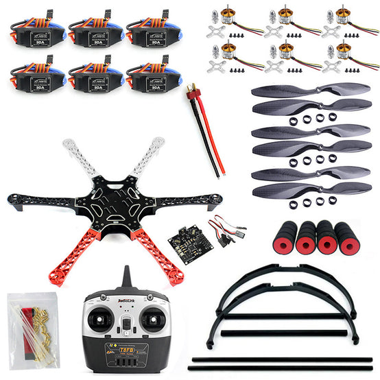 Packing including :1* F550 Hexa-Rotor Air Frame FlameWheel Kit6*A2212 1000KV Brushless Outrunner Motor W/ Mount6*JMT 30A Brushless ESC3*10x4.5 3K Carbon Fiber Propeller CW CCW 1045 1045R CF Props Blade1*RadioLink T8FB Radio Control System Transmitter Receiver T6F R6EH1*KKMulticopter V2.3 Circuit board Flight Controller V5.5